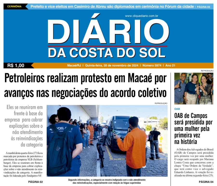 Edições Impressas Edição de quinta-feira 28/11/2024 nº 5974 Publicado em 28/11/2024 - 08:04 Escrito por Redação Notícias relacionadas: Seguinte Edição de sexta-feira 29/11/2024 nº 5975 Anterior Edição de quarta-feira 27/11/2024 nº 5973 Redação Notícias Recentes Cabo Frio12 minutos atrás Cabo Frio realiza evento de saúde e bem-estar no Outubro Rosa Cabo Frio18 minutos atrás Especialistas discutem entrega legal e proteção à infância em Cabo Frio Greve2 horas atrás TJRJ considera greve do Sepe irregular e determina retomada imediata das aulas em Rio das Ostras Cidadania3 horas atrás Plano Diretor de Rio das Ostras é tema de fórum da sociedade civil nesse sábado, 25 Saúde3 horas atrás Saquarema reforça luta contra o câncer de mama com Pedalada Outubro Rosa nesse domingo, 26 Cidades4 horas atrás Macaé Cup vai agitar a serra com o maior torneio de futebol infantil da região Cidades4 horas atrás Projeto “Cultura in Cine CIDENNF” leva cinema gratuito ao Campo das Malvinas em Macaé Polícia4 horas atrás Operação da PM encontra mais de duas mil cápsulas de cocaína em Rio das Ostras Polícia4 horas atrás Rua do tráfico: PM prende 5º traficante na mesma rua em Rio das Ostras em menos de uma semana Polícia4 horas atrás Denúncia anônima leva polícia a recuperar três carros roubados em Macaé Clique Diário E. L. Mídia Editora Ltda CNPJ: 09.298.880/0001-07 Redação: Rua Tupinambás 122 Gloria – Macaé/RJ comercial@diariocs.com (22) 2765-7353 (22) 999253130 Mais lidas da semana Cultura4 dias atrás Silva Jardim anuncia shows gratuitos de samba e pagode para o fim de semana Polícia4 dias atrás Policiais da PRF salvam bebê engasgado na BR-101, em Campos Cabo Frio4 dias atrás Atletas de várias cidades se enfrentam em competição de Muay Thai em Cabo Frio Cabo Frio4 dias atrás Serviços essenciais permanecem ativos durante ponto facultativo em Cabo Frio