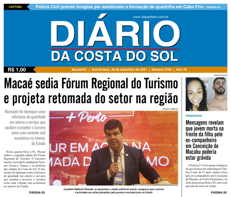 Edições Impressas Edição de quinta-feira 30/09/2021 n° 5195 Publicado em 30/09/2021 - 00:01 Escrito por Fernando Vitor Notícias relacionadas: Seguinte Edição de sexta-feira 01/10/2021 n° 5196 Anterior Edição de quarta-feira 29/09/2021 n° 5194 Fernando Vitor Notícias Recentes Cabo Frio9 horas atrás Cabo Frio realiza manhã de prevenção na sede da Guarda Civil Infraestrutura10 horas atrás Maricá anuncia obras de infraestrutura de mais de 50 km em Itaipuaçu Cidades14 horas atrás Macaé recebe neste domingo a XRun – 3ª Etapa com Meia Maratona Edições Impressas1 dia atrás Edição de sábado a segunda-feira 22 a 24/11/2025 nº 6217 Cultura2 dias atrás Espetáculo de dança se apresenta nesse sábado, 22, no Teatro de Rio das Ostras São Pedro da Aldeia2 dias atrás São Pedro da Aldeia movimenta praças e equipamentos culturais Cabo Frio2 dias atrás Cabo Frio impulsiona negócios locais com a Feira + Forte Cidades2 dias atrás Orla da Imbetiba recebe Feira Multicultural “Afro Macaé” neste sábado Cultura2 dias atrás Festa do Feijão começa nessa sexta-feira, 21, em Cantagalo, em Rio das Ostras Cidades2 dias atrás Quissamã celebra Consciência Negra com atividades culturais em escolas municipais Clique Diário E. L. Mídia Editora Ltda CNPJ: 09.298.880/0001-07 Redação: Rua Tupinambás 122 Gloria – Macaé/RJ comercial@diariocs.com (22) 2765-7353 (22) 999253130 Mais lidas da semana Desenvolvimento4 dias atrás Rio das Ostras estreita relações com a Rede Petro BC de olho em eventos do setor de energia em 2026 Cabo Frio3 dias atrás Cabo Frio promove ação do projeto Capoeiragem para registro de documentário Cultura4 dias atrás Moda e Prosa Caipira tem sua 6ª edição nessa quinta, 20, em Saquarema Meio Ambiente6 dias atrás Lagoa de Iriry, em Rio das Ostras, recebe nova sinalização focada em sustentabilidade