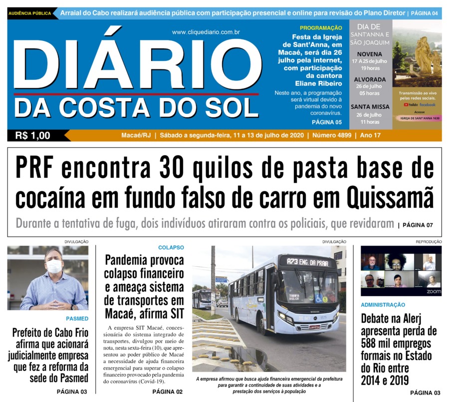 Edições Impressas Edição de Sáb a Seg 11 a 13/07/2020 nº 4899 Publicado em 11/07/2020 - 05:00 Escrito por Fernando Vitor Notícias relacionadas:destaque Seguinte Edição de terça-feira 14/07/2020 nº 4900 Anterior Edição de sexta-feira 10/07/2020 nº 4898 Fernando Vitor Notícias Recentes Cabo Frio18 horas atrás Arte e solidariedade marcam a 1ª Mostra de Dança Regional de Tamoios Cidades23 horas atrás Região serrana de Macaé recebe 1º X-Force Passeio de Quadriciclo e Aranha neste domingo (26) Polícia24 horas atrás Polícia apreende mais de meio quilo de drogas no Loteamento São João, em Rio das Ostras Saúde2 dias atrás Eventos esportivo e cultural reforça campanha do Outubro Rosa em Rio das Ostras nesse domingo, 26 Edições Impressas2 dias atrás Sábado a segunda-feira 25 a 27/10/2025 nº 6197 Cidades2 dias atrás Shopping Plaza Macaé oferece programação gratuita com feira de adoção e show de pagode neste fim de semana Cidades3 dias atrás 32º BPM completa 23 anos com solenidade de celebração e reconhecimento aos policiais Armação dos Búzios3 dias atrás Búzios celebra esporte e superação com XC RUN 2025 Araruama3 dias atrás Araruama promove saúde, lazer e cidadania em evento comunitário Arraial do cabo3 dias atrás Educação e sustentabilidade se encontram para jovens de Arraial do Cabo Clique Diário E. L. Mídia Editora Ltda CNPJ: 09.298.880/0001-07 Redação: Rua Tupinambás 122 Gloria – Macaé/RJ comercial@diariocs.com (22) 2765-7353 (22) 999253130 Mais lidas da semana Cultura7 dias atrás Silva Jardim anuncia shows gratuitos de samba e pagode para o fim de semana Cultura6 dias atrás Música, emoção e cores: Rodrigo Pontes apresenta show especial em Rio das Ostras Polícia7 dias atrás Policiais da PRF salvam bebê engasgado na BR-101, em Campos Cabo Frio7 dias atrás Atletas de várias cidades se enfrentam em competição de Muay Thai em Cabo Frio