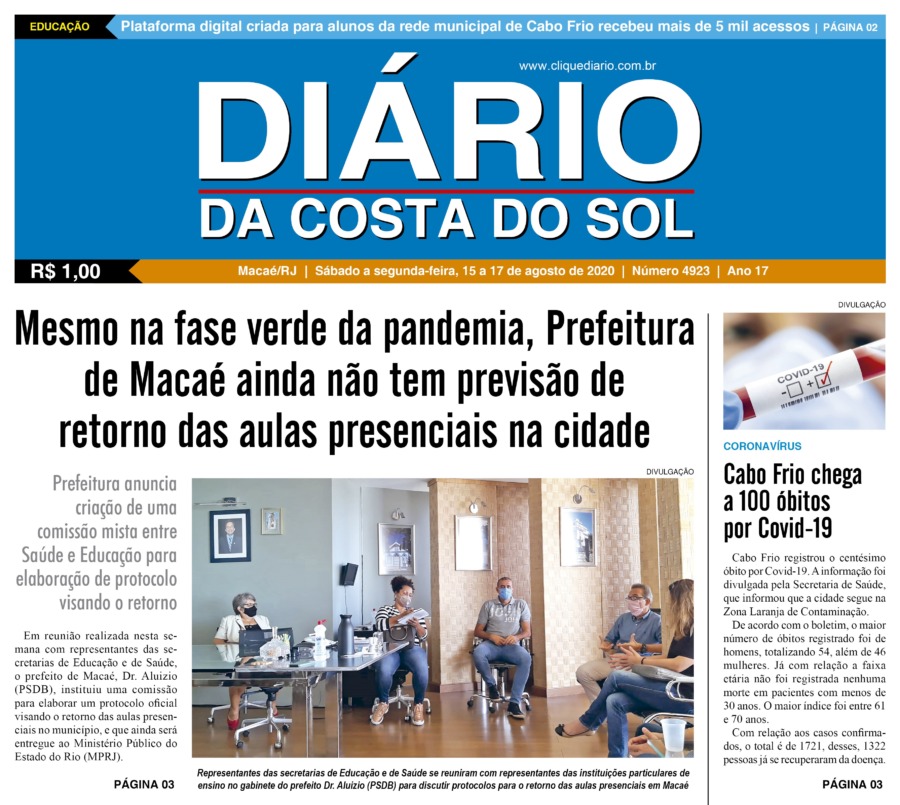 Edições Impressas Edição de Sáb a Seg 15 a 17/08/2020 nº 4923 Publicado em 15/08/2020 - 05:00 Escrito por Fernando Vitor Notícias relacionadas:destaque Seguinte Edição de terça-feira 18/08/2020 nº 4924 Anterior Edição de sexta-feira 14/08/2020 nº 4922 Fernando Vitor Notícias Recentes Cabo Frio10 horas atrás Arte e solidariedade marcam a 1ª Mostra de Dança Regional de Tamoios Cidades15 horas atrás Região serrana de Macaé recebe 1º X-Force Passeio de Quadriciclo e Aranha neste domingo (26) Polícia15 horas atrás Polícia apreende mais de meio quilo de drogas no Loteamento São João, em Rio das Ostras Saúde1 dia atrás Eventos esportivo e cultural reforça campanha do Outubro Rosa em Rio das Ostras nesse domingo, 26 Edições Impressas2 dias atrás Sábado a segunda-feira 25 a 27/10/2025 nº 6197 Cidades2 dias atrás Shopping Plaza Macaé oferece programação gratuita com feira de adoção e show de pagode neste fim de semana Cidades2 dias atrás 32º BPM completa 23 anos com solenidade de celebração e reconhecimento aos policiais Armação dos Búzios2 dias atrás Búzios celebra esporte e superação com XC RUN 2025 Araruama2 dias atrás Araruama promove saúde, lazer e cidadania em evento comunitário Arraial do cabo2 dias atrás Educação e sustentabilidade se encontram para jovens de Arraial do Cabo Clique Diário E. L. Mídia Editora Ltda CNPJ: 09.298.880/0001-07 Redação: Rua Tupinambás 122 Gloria – Macaé/RJ comercial@diariocs.com (22) 2765-7353 (22) 999253130 Mais lidas da semana Cultura6 dias atrás Silva Jardim anuncia shows gratuitos de samba e pagode para o fim de semana Cultura5 dias atrás Música, emoção e cores: Rodrigo Pontes apresenta show especial em Rio das Ostras Cabo Frio6 dias atrás Atletas de várias cidades se enfrentam em competição de Muay Thai em Cabo Frio Cabo Frio6 dias atrás Serviços essenciais permanecem ativos durante ponto facultativo em Cabo Frio