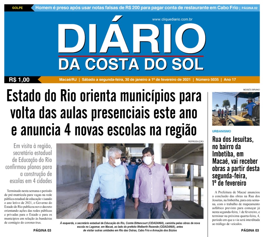 Edições Impressas Edição de Sáb a Seg 30/01 a 01/02 nº 5035 Publicado em 30/01/2021 - 02:46 Escrito por Fernando Vitor Notícias relacionadas:destaque Seguinte Edição de terça-feira 02/02/2021 nº 5036 Anterior Edição de sexta-feira 29/01/2021 nº 5034 Fernando Vitor Notícias Recentes Arraial do cabo2 horas atrás Arraial do Cabo promove imersão cultural no Mês da Consciência Negra com o Festival Ubuntu Arraial do cabo2 horas atrás Mutirão de Arraial do Cabo tem ação ambiental que incentiva preservação e recuperação da vegetação Arraial do cabo2 horas atrás Com três dias de shows e sabores, Arraial do Cabo celebra o melhor da culinária praiana Meio Ambiente3 horas atrás Travessia Mico-Leão Dourado tem 1º trecho inaugurado em Silva Jardim Arraial do cabo3 horas atrás Campanha Novembro Azul leva cuidados e prevenção aos trabalhadores do mar em Arraial do Cabo Cidades3 horas atrás Criança de 4 anos morre após broncoaspirar objeto em Campos Cidades3 horas atrás Servidores de Rio das Ostras participam de treinamento do Estado em Búzios Cabo Frio3 horas atrás Noite de pedal em Cabo Frio homenageia a história e o patrimônio local Cidades3 horas atrás Câmara de Macaé aprova Programa Saúde do Homem e regulamenta uso de IA no serviço público Cidades4 horas atrás Quissamã realiza ações do Novembro Azul com foco no cuidado integral à saúde do homem Clique Diário E. L. Mídia Editora Ltda CNPJ: 09.298.880/0001-07 Redação: Rua Tupinambás 122 Gloria – Macaé/RJ comercial@diariocs.com (22) 2765-7353 (22) 999253130 Mais lidas da semana Arraial do cabo5 dias atrás Arraial do Cabo celebra 3ª edição do Festival de Frutos do Mar com entrada livre; Carol Biazin, Ramona Rox, Liah Soares e mais Meio Ambiente6 dias atrás Programa do governo estadual promove limpeza de rio no Âncora, em Rio das Ostras Meio Ambiente5 dias atrás Ações do Programa Limpa Rio seguem em vários pontos de Rio das Ostras Cidades3 horas atrás Servidores de Rio das Ostras participam de treinamento do Estado em Búzios