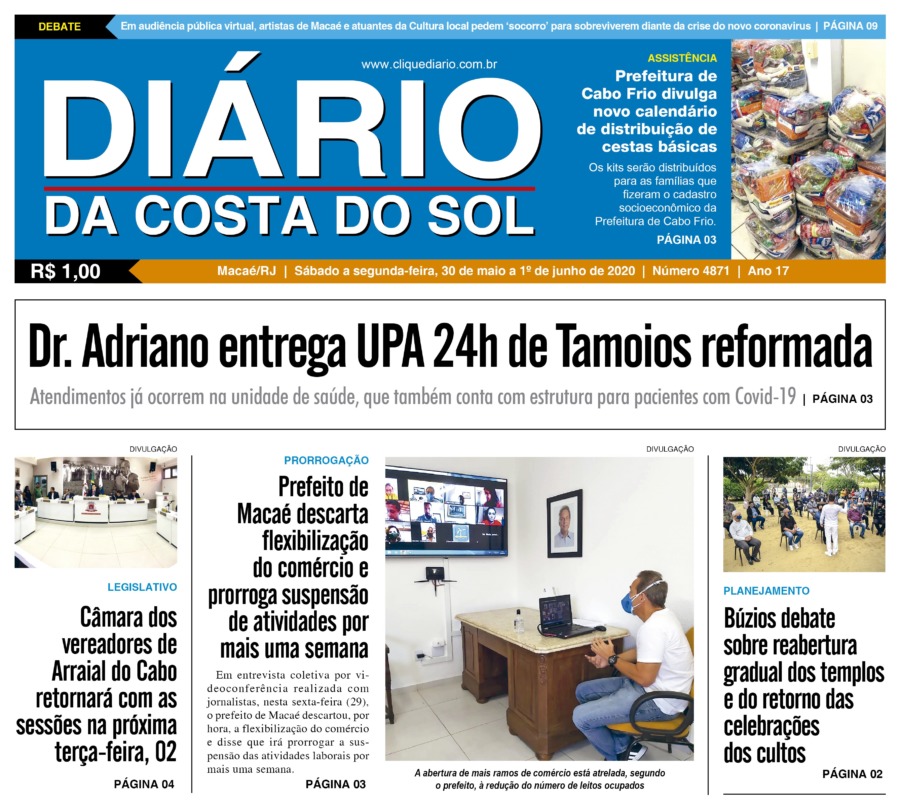 Edições Impressas Edição de Sáb a Seg 30/05 a 01/06/2020 nº 4871 Publicado em 30/05/2020 - 05:00 Escrito por Fernando Vitor Notícias relacionadas:destaque Seguinte Edição de terça-feira 02/06/2020 nº 4872 Anterior Edição de sexta-feira 29/05/2020 nº 4870 Fernando Vitor Notícias Recentes Polícia4 minutos atrás Polícia apreende mais de 10 mil reais em bebidas sem nota fiscal em Rio das Ostras Arraial do cabo20 minutos atrás Ação conjunta entre CPROEIS e PATAMO prende suspeito com drogas em Arraial do Cabo Sem categoria2 horas atrás Atleta do Cabo Frio + Esporte é destaque na Corrida do Guardião Cidades3 horas atrás Mulheres de Saquarema participam de atividade lúdica sobre autoconhecimento Diversão4 horas atrás Silva Jardim celebra o Mês das Crianças com mais uma atividade no Centro Polícia4 horas atrás Polícia descobre esconderijo do tráfico e apreende grande quantidade de drogas em Macaé Polícia4 horas atrás Homem é preso com 105 cápsulas de cocaína em localidade de Rio das Ostras Polícia4 horas atrás Criminoso foge após perseguição e drogas são apreendidas em Macaé Polícia4 horas atrás Traficante é preso em Macaé após perseguição policial no Parque Aeroporto Polícia4 horas atrás Polícia prende suspeito e recupera carro roubado de madrugada em Rio das Ostras Clique Diário E. L. Mídia Editora Ltda CNPJ: 09.298.880/0001-07 Redação: Rua Tupinambás 122 Gloria – Macaé/RJ comercial@diariocs.com (22) 2765-7353 (22) 999253130 Mais lidas da semana Cultura7 dias atrás Silva Jardim anuncia shows gratuitos de samba e pagode para o fim de semana Cultura6 dias atrás Música, emoção e cores: Rodrigo Pontes apresenta show especial em Rio das Ostras Edições Impressas5 dias atrás Edição de quarta-feira 22/10/2025 nº 6195 Arraial do cabo7 dias atrás Prisão em flagrante marca operação da Patrulha Maria da Penha em Arraial do Cabo