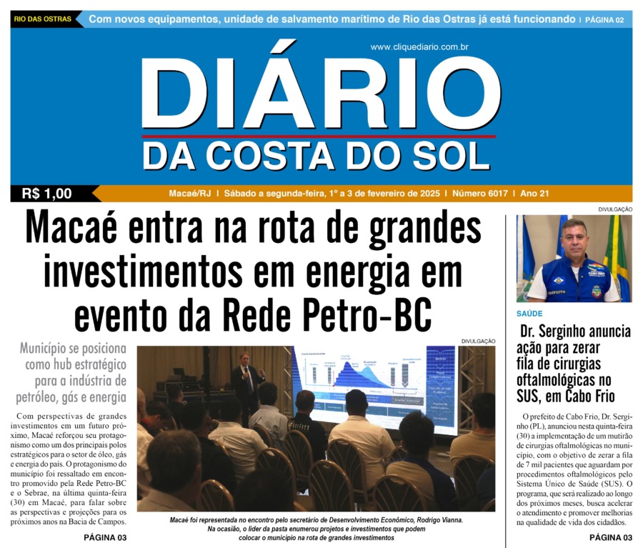 Edições Impressas Edição de sábado a segunda-feira 01 a 03/02/2025 nº 6017 Publicado em 01/02/2025 - 07:14 Escrito por Redação Notícias relacionadas: Seguinte Edição de terça-feira 04/02/2025 nº 6018 Anterior Edição de sexta-feira 31/01/2025 nº 6016 Redação Notícias Recentes Cabo Frio4 horas atrás Agentes de Cabo Frio recebem novo treinamento técnico para atuar em casos de poluição sonora Cabo Frio5 horas atrás Homem procurado por latrocínio é detido por agentes em Cabo Frio Cabo Frio5 horas atrás Representante da Guarda Civil de Cabo Frio compete na etapa final ao lado de jovens atletas Polícia5 horas atrás Prefeito de Rio das Ostras volta de Brasília com esperança de novos investimentos Cidades5 horas atrás Campos publica 8ª convocação e chama 374 professores substitutos para a rede municipal Esporte5 horas atrás De Saquarema para o Brasileirão: Vasco troca gramado de São Januário Cidades5 horas atrás Quissamã inicia planejamento educacional para 2026 com foco em Educação Financeira Polícia8 horas atrás Mulher é presa na RJ-106, em Saquarema, com R$ 38 mil em drogas e arma Saúde9 horas atrás Silva Jardim tem aulão em alusão à campanha mundial do Novembro Azul Mobilidade10 horas atrás Mobilidade promove fiscalização para verificar situação de táxis em Rio das Ostras Clique Diário E. L. Mídia Editora Ltda CNPJ: 09.298.880/0001-07 Redação: Rua Tupinambás 122 Gloria – Macaé/RJ comercial@diariocs.com (22) 2765-7353 (22) 999253130 Mais lidas da semana Cultura10 horas atrás Adilson Lopes apresenta exposição “Trajetória” em Casimiro de Abreu Cidades3 dias atrás Servidores de Rio das Ostras participam de treinamento do Estado em Búzios Polícia2 dias atrás Farmácia é interditada e uma pessoa é presa em Rio das Ostras em operação da Polícia Federal Cidades2 dias atrás Vereadores de Macaé vão embarcar nesta quinta para participar da COP 30 em Belém