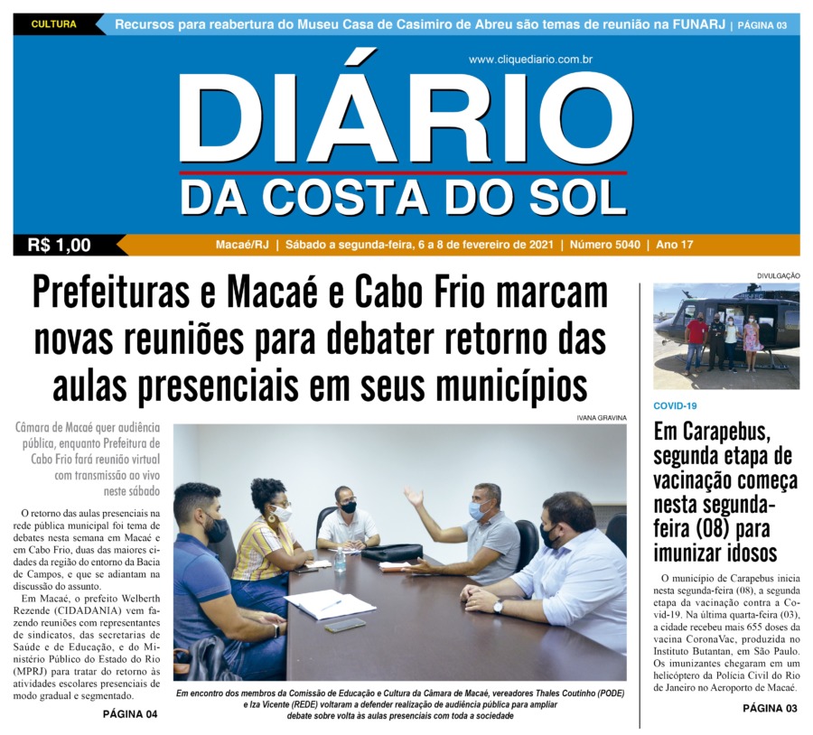 Edições Impressas Edição de sábado a segunda-feira 06 a 08/02/2021 nº 5040 Publicado em 06/02/2021 - 05:10 Escrito por Fernando Vitor Notícias relacionadas:destaque Seguinte Edição de terça-feira 09/02/2021 nº 5041 Anterior Edição de sexta-feira 05/02/2021 nº 5039 Fernando Vitor Notícias Recentes Arraial do cabo7 horas atrás Arraial do Cabo promove imersão cultural no Mês da Consciência Negra com o Festival Ubuntu Arraial do cabo7 horas atrás Mutirão de Arraial do Cabo tem ação ambiental que incentiva preservação e recuperação da vegetação Arraial do cabo7 horas atrás Com três dias de shows e sabores, Arraial do Cabo celebra o melhor da culinária praiana Meio Ambiente8 horas atrás Travessia Mico-Leão Dourado tem 1º trecho inaugurado em Silva Jardim Arraial do cabo9 horas atrás Campanha Novembro Azul leva cuidados e prevenção aos trabalhadores do mar em Arraial do Cabo Cidades9 horas atrás Criança de 4 anos morre após broncoaspirar objeto em Campos Cidades9 horas atrás Servidores de Rio das Ostras participam de treinamento do Estado em Búzios Cabo Frio9 horas atrás Noite de pedal em Cabo Frio homenageia a história e o patrimônio local Cidades9 horas atrás Câmara de Macaé aprova Programa Saúde do Homem e regulamenta uso de IA no serviço público Cidades9 horas atrás Quissamã realiza ações do Novembro Azul com foco no cuidado integral à saúde do homem Clique Diário E. L. Mídia Editora Ltda CNPJ: 09.298.880/0001-07 Redação: Rua Tupinambás 122 Gloria – Macaé/RJ comercial@diariocs.com (22) 2765-7353 (22) 999253130 Mais lidas da semana Arraial do cabo6 dias atrás Arraial do Cabo celebra 3ª edição do Festival de Frutos do Mar com entrada livre; Carol Biazin, Ramona Rox, Liah Soares e mais Meio Ambiente6 dias atrás Programa do governo estadual promove limpeza de rio no Âncora, em Rio das Ostras Meio Ambiente5 dias atrás Ações do Programa Limpa Rio seguem em vários pontos de Rio das Ostras Cidades9 horas atrás Servidores de Rio das Ostras participam de treinamento do Estado em Búzios