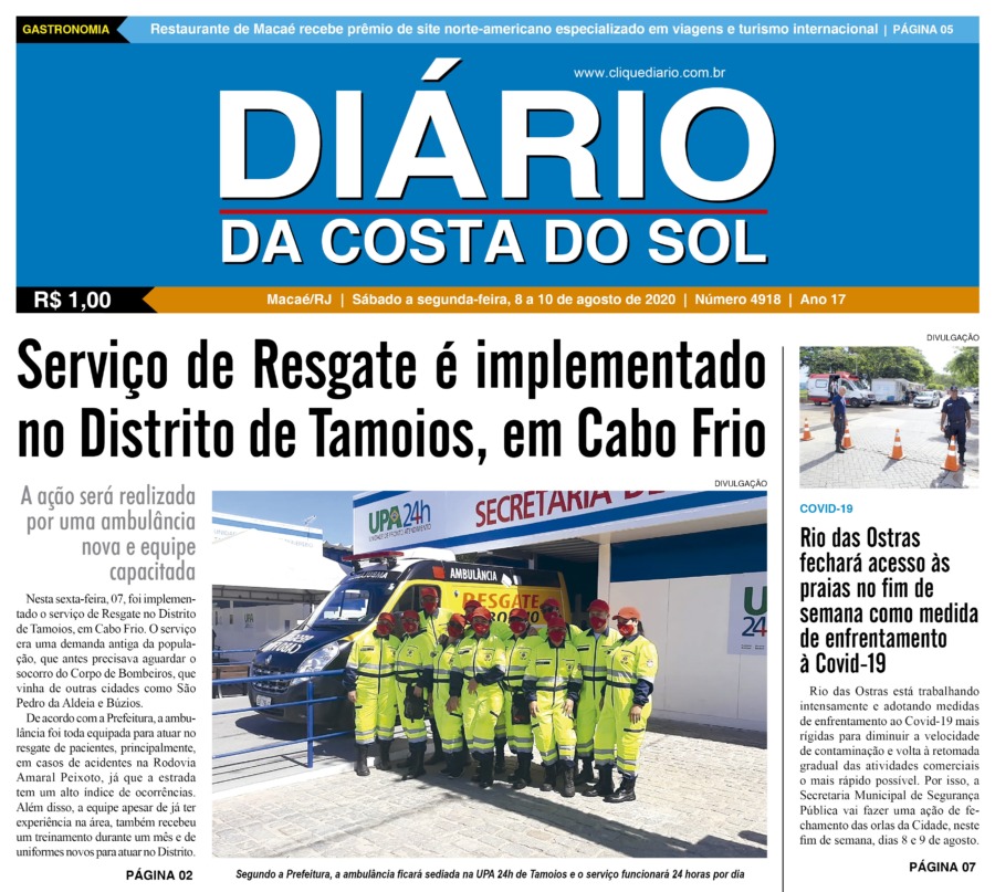 Edições Impressas Edição de Sábado a segunda-feira 08 a 10/08/2020 nº 4918 Publicado em 08/08/2020 - 05:00 Escrito por Fernando Vitor Notícias relacionadas:destaque Seguinte Edição de terça-feira 11/08/2020 nº 4919 Anterior Edição de sexta-feira 07/08/2020 nº 4917 Fernando Vitor Notícias Recentes Cabo Frio12 horas atrás Arte e solidariedade marcam a 1ª Mostra de Dança Regional de Tamoios Cidades18 horas atrás Região serrana de Macaé recebe 1º X-Force Passeio de Quadriciclo e Aranha neste domingo (26) Polícia18 horas atrás Polícia apreende mais de meio quilo de drogas no Loteamento São João, em Rio das Ostras Saúde2 dias atrás Eventos esportivo e cultural reforça campanha do Outubro Rosa em Rio das Ostras nesse domingo, 26 Edições Impressas2 dias atrás Sábado a segunda-feira 25 a 27/10/2025 nº 6197 Cidades2 dias atrás Shopping Plaza Macaé oferece programação gratuita com feira de adoção e show de pagode neste fim de semana Cidades2 dias atrás 32º BPM completa 23 anos com solenidade de celebração e reconhecimento aos policiais Armação dos Búzios2 dias atrás Búzios celebra esporte e superação com XC RUN 2025 Araruama2 dias atrás Araruama promove saúde, lazer e cidadania em evento comunitário Arraial do cabo2 dias atrás Educação e sustentabilidade se encontram para jovens de Arraial do Cabo Clique Diário E. L. Mídia Editora Ltda CNPJ: 09.298.880/0001-07 Redação: Rua Tupinambás 122 Gloria – Macaé/RJ comercial@diariocs.com (22) 2765-7353 (22) 999253130 Mais lidas da semana Cultura6 dias atrás Silva Jardim anuncia shows gratuitos de samba e pagode para o fim de semana Cultura6 dias atrás Música, emoção e cores: Rodrigo Pontes apresenta show especial em Rio das Ostras Cabo Frio6 dias atrás Atletas de várias cidades se enfrentam em competição de Muay Thai em Cabo Frio Cabo Frio6 dias atrás Serviços essenciais permanecem ativos durante ponto facultativo em Cabo Frio