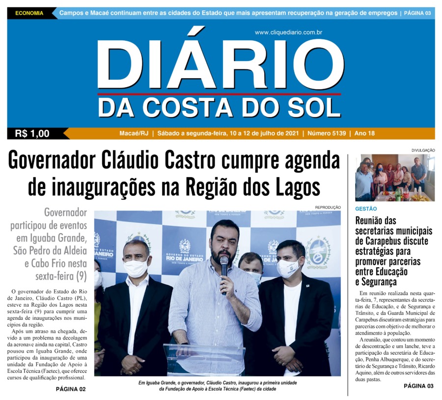 Edições Impressas Edição de sábado a segunda-feira 10 a 12/07/2021 n° 5139 Publicado em 10/07/2021 - 00:01 Escrito por Fernando Vitor Notícias relacionadas: Seguinte Edição de terça-feira 13/07/2021 n° 5140 Anterior Edição de sexta-feira 09/07/2021 n° 5138 Fernando Vitor Notícias Recentes Arraial do cabo3 minutos atrás Município de Arraial organiza atividade crescente e amplia controle das rotas Cabo Frio16 minutos atrás Força-tarefa reúne mergulhadores e voluntários em Cabo Frio, retirando 160 pneus Cabo Frio21 minutos atrás Programação dedicada ao Mês da Consciência Negra atrai grande público cabo-friense Cabo Frio26 minutos atrás Cabo Frio: Operação integrada em Tamoios combate irregularidades e ruídos no bairro Polícia1 hora atrás Polícia prende homem que extorquia motoristas de vans em Rio das Ostras Cidades2 horas atrás Unimed Costa do Sol fortalece maternidade de alta complexidade e supera índices nacionais Polícia3 horas atrás Polícia Civil de Macaé prende suspeito de tentativa de latrocínio ocorrido em 2023 Cidades3 horas atrás Macaé intensifica campanha e anuncia Dia D para doação de sangue em 29 de novembro Lazer4 horas atrás Evento marca abertura do Natal em Silva Jardim nessa quarta-feira, 19 Polícia5 horas atrás Casal é preso com grande quantidade de drogas em ação da PM em Rio das Ostras Clique Diário E. L. Mídia Editora Ltda CNPJ: 09.298.880/0001-07 Redação: Rua Tupinambás 122 Gloria – Macaé/RJ comercial@diariocs.com (22) 2765-7353 (22) 999253130 Mais lidas da semana Cultura3 dias atrás Adilson Lopes apresenta exposição “Trajetória” em Casimiro de Abreu Polícia5 dias atrás Farmácia é interditada e uma pessoa é presa em Rio das Ostras em operação da Polícia Federal Cidades6 dias atrás Servidores de Rio das Ostras participam de treinamento do Estado em Búzios Cidades4 dias atrás Macaé é finalista no Festival Internacional de Cinema Cristão com “A Paixão de Cristo”