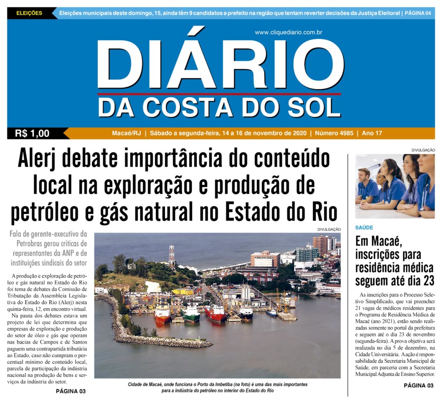 Edições Impressas Edição de sábado a segunda-feira 14 a 16_11_2020 nº 4985 Publicado em 14/11/2020 - 02:18 Escrito por Fernando Vitor Notícias relacionadas:destaque Seguinte Edição de terça-feira 17/11/2020 nº 4986 Anterior Edição de sexta-feira 13_11_2020 nº 4984 Fernando Vitor Notícias Recentes São Pedro da Aldeia12 horas atrás Feirão de Empregabilidade promete movimentar a Praça das Águas em São Pedro da Aldeia Diversão13 horas atrás Praia do Abricó, em Rio das Ostras, sedia evento fitness nesse fim de semana Arraial do cabo13 horas atrás Feira de Ciências e Tecnologia em Arraial tem visita ilustre dos cães da Segurança Pública Arraial do cabo13 horas atrás Arraial do Cabo tem renovação da certificação Internacional de turismo sustentável na Lagoa do Caiçara Cabo Frio13 horas atrás Cercamento e plantio de espécies nativas marcam nova fase de recuperação ambiental em Cabo Frio Cidades13 horas atrás Homem é preso com grande quantidade de drogas no Lagomar, em Macaé Cidades13 horas atrás Alerj aprova projeto que garante salário integral a familiares de PMs mortos em combate Cidades14 horas atrás GCM de Campos participa de curso de operador da Patrulha Maria da Penha em Niterói Meio Ambiente14 horas atrás Ações do Programa Limpa Rio seguem em vários pontos de Rio das Ostras Cidades14 horas atrás Quissamã participa do lançamento do Programa Ambiente Resiliente, do Governo do Estado Clique Diário E. L. Mídia Editora Ltda CNPJ: 09.298.880/0001-07 Redação: Rua Tupinambás 122 Gloria – Macaé/RJ comercial@diariocs.com (22) 2765-7353 (22) 999253130 Mais lidas da semana Mobilidade7 dias atrás Rio das Ostras intensifica ações de combate a irregularidades no trânsito Cidades3 dias atrás HFM ganha novo Pronto-Socorro moderno e ampliado em Campos Educação7 dias atrás Cerimônia no Teatro fecha o 2º Prêmio Literário do Ensino Fundamental de Rio das Ostras Cultura7 dias atrás Nova temporada do Rio das Ostras Instrumental apresenta show de Nico Rezende
