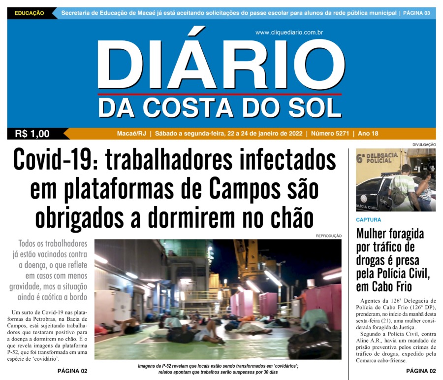 Edições Impressas Edição de sábado a segunda-feira, 22 a 24/01/2022 nº 5271 Publicado em 21/01/2022 - 23:58 Escrito por Fernando Vitor Notícias relacionadas: Seguinte Edição de terça-feira 25/01/2022 nº 5272 Anterior Edição de sexta-feira 21/01/2022 nº 5270 Fernando Vitor Notícias Recentes Arraial do cabo9 horas atrás Educação de Arraial do Cabo orienta responsáveis sobre rematrícula para o próximo ano Cabo Frio9 horas atrás Evento comercial mais aguardado de Cabo Frio atinge 100% de estandes vendidos Saúde9 horas atrás Rio das Ostras comemora melhorias no atendimento da saúde municipal Cabo Frio9 horas atrás Nova exposição no Palácio das Águias recebe homenagem da cultura negra em Cabo Frio com 44 obras Arraial do cabo10 horas atrás A FIPAC em Arraial do Cabo alerta operadores náuticos: regularizem suas embarcações Comércio10 horas atrás Sindicomércio anuncia abertura do Natal Sesc 2025 em Rio das Ostras e Casimiro de Abreu Polícia11 horas atrás Polícia apreende drogas no Lagomar após varredura motivada por denúncia Polícia11 horas atrás Operação do GAT do 32º BPM apreende drogas, dinheiro e moto sem placa na Favela da Linha Desenvolvimento11 horas atrás Silva Jardim realiza audiência pública de revisão do seu Plano de Saneamento Básico Arraial do cabo12 horas atrás O poder da natureza e da memória em telas na mostra de Fransciscone Araújo em Arraial do Cabo Clique Diário E. L. Mídia Editora Ltda CNPJ: 09.298.880/0001-07 Redação: Rua Tupinambás 122 Gloria – Macaé/RJ comercial@diariocs.com (22) 2765-7353 (22) 999253130 Mais lidas da semana Cultura5 dias atrás Adilson Lopes apresenta exposição “Trajetória” em Casimiro de Abreu Polícia7 dias atrás Farmácia é interditada e uma pessoa é presa em Rio das Ostras em operação da Polícia Federal Meio Ambiente1 dia atrás Lagoa de Iriry, em Rio das Ostras, recebe nova sinalização focada em sustentabilidade Cidades1 dia atrás Macaé registra avanço na coleta seletiva porta a porta e recolhe mais de 2 toneladas em 45 dias