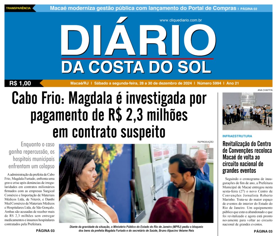 Edições Impressas Edição de sábado a segunda-feira 28 a 30/12/2024 nº 5994 Publicado em 28/12/2024 - 08:22 Escrito por Redação Notícias relacionadas: Seguinte Edição de terça a quinta-feira 31/12/2024 a 02/01/2025 nº 5995 Anterior Edição de sexta-feira 27/12/2024 nº 5993 Redação Notícias Recentes Arraial do cabo5 horas atrás Arraial do Cabo promove imersão cultural no Mês da Consciência Negra com o Festival Ubuntu Arraial do cabo5 horas atrás Mutirão de Arraial do Cabo tem ação ambiental que incentiva preservação e recuperação da vegetação Arraial do cabo5 horas atrás Com três dias de shows e sabores, Arraial do Cabo celebra o melhor da culinária praiana Meio Ambiente6 horas atrás Travessia Mico-Leão Dourado tem 1º trecho inaugurado em Silva Jardim Arraial do cabo7 horas atrás Campanha Novembro Azul leva cuidados e prevenção aos trabalhadores do mar em Arraial do Cabo Cidades7 horas atrás Criança de 4 anos morre após broncoaspirar objeto em Campos Cidades7 horas atrás Servidores de Rio das Ostras participam de treinamento do Estado em Búzios Cabo Frio7 horas atrás Noite de pedal em Cabo Frio homenageia a história e o patrimônio local Cidades7 horas atrás Câmara de Macaé aprova Programa Saúde do Homem e regulamenta uso de IA no serviço público Cidades8 horas atrás Quissamã realiza ações do Novembro Azul com foco no cuidado integral à saúde do homem Clique Diário E. L. Mídia Editora Ltda CNPJ: 09.298.880/0001-07 Redação: Rua Tupinambás 122 Gloria – Macaé/RJ comercial@diariocs.com (22) 2765-7353 (22) 999253130 Mais lidas da semana Arraial do cabo5 dias atrás Arraial do Cabo celebra 3ª edição do Festival de Frutos do Mar com entrada livre; Carol Biazin, Ramona Rox, Liah Soares e mais Meio Ambiente6 dias atrás Programa do governo estadual promove limpeza de rio no Âncora, em Rio das Ostras Meio Ambiente5 dias atrás Ações do Programa Limpa Rio seguem em vários pontos de Rio das Ostras Cidades7 horas atrás Servidores de Rio das Ostras participam de treinamento do Estado em Búzios