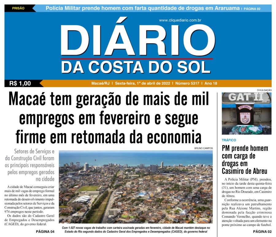Redação: Rua Tupinambás 122 Gloria – Macaé/RJ