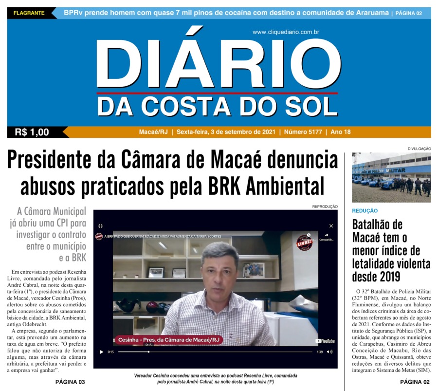 Redação: Rua Tupinambás 122 Gloria – Macaé/RJ