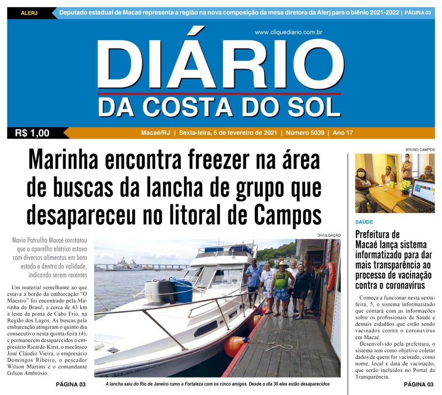 Edições Impressas Edição de sexta-feira 05/02/2021 nº 5039 Publicado em 05/02/2021 - 04:36 Escrito por Fernando Vitor Notícias relacionadas:destaque Seguinte Edição de sábado a segunda-feira 06 a 08/02/2021 nº 5040 Anterior Edição de quinta-feira 04/02/2021 nº 5038 Fernando Vitor Notícias Recentes Arraial do cabo7 horas atrás Arraial do Cabo promove imersão cultural no Mês da Consciência Negra com o Festival Ubuntu Arraial do cabo7 horas atrás Mutirão de Arraial do Cabo tem ação ambiental que incentiva preservação e recuperação da vegetação Arraial do cabo7 horas atrás Com três dias de shows e sabores, Arraial do Cabo celebra o melhor da culinária praiana Meio Ambiente8 horas atrás Travessia Mico-Leão Dourado tem 1º trecho inaugurado em Silva Jardim Arraial do cabo9 horas atrás Campanha Novembro Azul leva cuidados e prevenção aos trabalhadores do mar em Arraial do Cabo Cidades9 horas atrás Criança de 4 anos morre após broncoaspirar objeto em Campos Cidades9 horas atrás Servidores de Rio das Ostras participam de treinamento do Estado em Búzios Cabo Frio9 horas atrás Noite de pedal em Cabo Frio homenageia a história e o patrimônio local Cidades9 horas atrás Câmara de Macaé aprova Programa Saúde do Homem e regulamenta uso de IA no serviço público Cidades10 horas atrás Quissamã realiza ações do Novembro Azul com foco no cuidado integral à saúde do homem Clique Diário E. L. Mídia Editora Ltda CNPJ: 09.298.880/0001-07 Redação: Rua Tupinambás 122 Gloria – Macaé/RJ comercial@diariocs.com (22) 2765-7353 (22) 999253130 Mais lidas da semana Arraial do cabo6 dias atrás Arraial do Cabo celebra 3ª edição do Festival de Frutos do Mar com entrada livre; Carol Biazin, Ramona Rox, Liah Soares e mais Meio Ambiente6 dias atrás Programa do governo estadual promove limpeza de rio no Âncora, em Rio das Ostras Meio Ambiente5 dias atrás Ações do Programa Limpa Rio seguem em vários pontos de Rio das Ostras Cidades9 horas atrás Servidores de Rio das Ostras participam de treinamento do Estado em Búzios