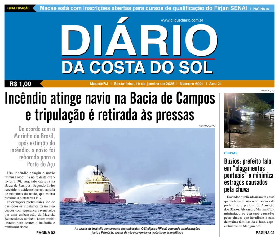 Edições Impressas Edição de sexta-feira 10/01/2025 nº 6001 Publicado em 10/01/2025 - 07:12 Escrito por Redação Notícias relacionadas: Seguinte Edição de sábado a segunda-feira 11 a 13/01/2025 nº 6002 Anterior Edição de quinta-feira 09/01/2025 nº 6000 Redação Notícias Recentes Cabo Frio4 horas atrás Agentes de Cabo Frio recebem novo treinamento técnico para atuar em casos de poluição sonora Cabo Frio5 horas atrás Homem procurado por latrocínio é detido por agentes em Cabo Frio Cabo Frio5 horas atrás Representante da Guarda Civil de Cabo Frio compete na etapa final ao lado de jovens atletas Polícia5 horas atrás Prefeito de Rio das Ostras volta de Brasília com esperança de novos investimentos Cidades5 horas atrás Campos publica 8ª convocação e chama 374 professores substitutos para a rede municipal Esporte5 horas atrás De Saquarema para o Brasileirão: Vasco troca gramado de São Januário Cidades5 horas atrás Quissamã inicia planejamento educacional para 2026 com foco em Educação Financeira Polícia8 horas atrás Mulher é presa na RJ-106, em Saquarema, com R$ 38 mil em drogas e arma Saúde9 horas atrás Silva Jardim tem aulão em alusão à campanha mundial do Novembro Azul Mobilidade10 horas atrás Mobilidade promove fiscalização para verificar situação de táxis em Rio das Ostras Clique Diário E. L. Mídia Editora Ltda CNPJ: 09.298.880/0001-07 Redação: Rua Tupinambás 122 Gloria – Macaé/RJ comercial@diariocs.com (22) 2765-7353 (22) 999253130 Mais lidas da semana Cultura10 horas atrás Adilson Lopes apresenta exposição “Trajetória” em Casimiro de Abreu Cidades3 dias atrás Servidores de Rio das Ostras participam de treinamento do Estado em Búzios Polícia2 dias atrás Farmácia é interditada e uma pessoa é presa em Rio das Ostras em operação da Polícia Federal Cidades2 dias atrás Vereadores de Macaé vão embarcar nesta quinta para participar da COP 30 em Belém