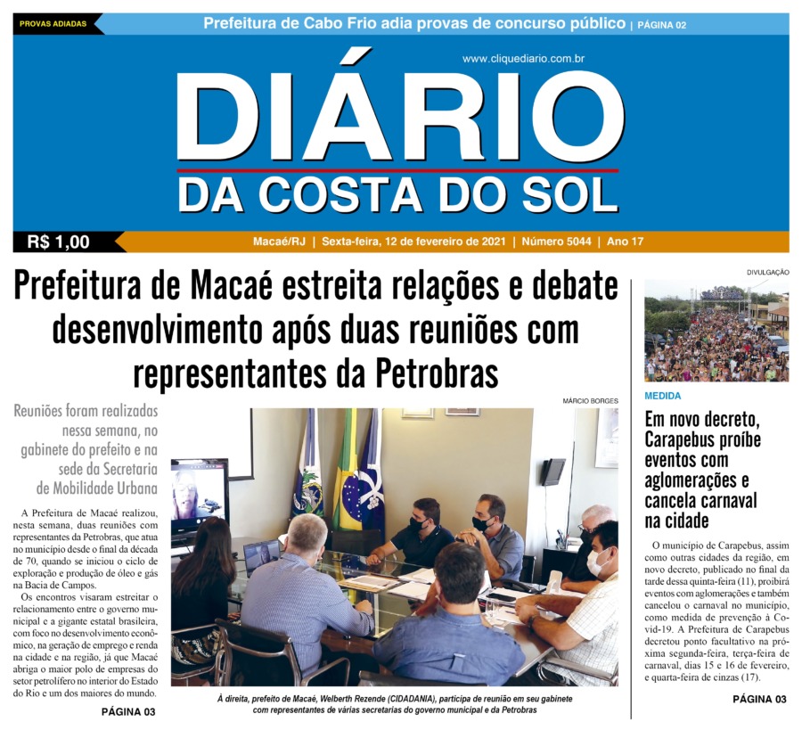 Edições Impressas Edição de sexta-feira 12/02/2021 nº 5044 Publicado em 12/02/2021 - 00:00 Escrito por Fernando Vitor Notícias relacionadas:destaque Seguinte Edição de sábado a quinta-feira 13 a 18/02/2021 nº 5045 Anterior Edição de quinta-feira 11/02/2021 nº 5043 Fernando Vitor Notícias Recentes Arraial do cabo15 horas atrás Arraial do Cabo promove imersão cultural no Mês da Consciência Negra com o Festival Ubuntu Arraial do cabo15 horas atrás Mutirão de Arraial do Cabo tem ação ambiental que incentiva preservação e recuperação da vegetação Arraial do cabo15 horas atrás Com três dias de shows e sabores, Arraial do Cabo celebra o melhor da culinária praiana Meio Ambiente16 horas atrás Travessia Mico-Leão Dourado tem 1º trecho inaugurado em Silva Jardim Arraial do cabo16 horas atrás Campanha Novembro Azul leva cuidados e prevenção aos trabalhadores do mar em Arraial do Cabo Cidades16 horas atrás Criança de 4 anos morre após broncoaspirar objeto em Campos Cidades16 horas atrás Servidores de Rio das Ostras participam de treinamento do Estado em Búzios Cabo Frio16 horas atrás Noite de pedal em Cabo Frio homenageia a história e o patrimônio local Cidades16 horas atrás Câmara de Macaé aprova Programa Saúde do Homem e regulamenta uso de IA no serviço público Cidades17 horas atrás Quissamã realiza ações do Novembro Azul com foco no cuidado integral à saúde do homem Clique Diário E. L. Mídia Editora Ltda CNPJ: 09.298.880/0001-07 Redação: Rua Tupinambás 122 Gloria – Macaé/RJ comercial@diariocs.com (22) 2765-7353 (22) 999253130 Mais lidas da semana Arraial do cabo6 dias atrás Arraial do Cabo celebra 3ª edição do Festival de Frutos do Mar com entrada livre; Carol Biazin, Ramona Rox, Liah Soares e mais Meio Ambiente7 dias atrás Programa do governo estadual promove limpeza de rio no Âncora, em Rio das Ostras Meio Ambiente6 dias atrás Ações do Programa Limpa Rio seguem em vários pontos de Rio das Ostras Cidades16 horas atrás Servidores de Rio das Ostras participam de treinamento do Estado em Búzios