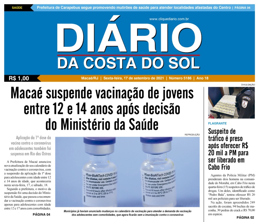 Edições Impressas Edição de sexta-feira 17/09/2021 n° 5186 Publicado em 17/09/2021 - 01:56 Escrito por Fernando Vitor Notícias relacionadas: Seguinte Edição de sábado a segunda-feira 18 a 20/09/2021 n° 5187 Anterior Edição de quinta-feira 16/09/2021 n° 5185 Fernando Vitor Notícias Recentes Arraial do cabo3 horas atrás Arraial do Cabo estabelece novas diretrizes para operação e uso da Marina dos Pescadores Sem categoria3 horas atrás Arraial do Cabo inicia operação para padronizar quadriciclos e similares Saúde3 horas atrás Rio das Ostras amplia vacinação contra HPV até dezembro para jovens até 19 anos Cidades4 horas atrás Obras da Praça do Servidor entram na fase final no bairro Miramar Saúde4 horas atrás Prefeitura intensifica ações de combate ao mosquito da dengue em Rio das Ostras Cidades4 horas atrás Atletas de Quissamã conquistam títulos no Campeonato Estadual de Kickboxing Cabo Frio4 horas atrás Representantes de Cabo Frio dialogam sobre avanços na cultura em Areal Cidades4 horas atrás Campos sedia o Connex-E 2025 para debater energia e desenvolvimento econômico Cabo Frio4 horas atrás Atletas de Cabo Frio brilham com cinco ouros em torneio regional Arraial do cabo5 horas atrás Arraial do Cabo libera notas das provas objetivas do Concurso Público 01/2025 Clique Diário E. L. Mídia Editora Ltda CNPJ: 09.298.880/0001-07 Redação: Rua Tupinambás 122 Gloria – Macaé/RJ comercial@diariocs.com (22) 2765-7353 (22) 999253130 Mais lidas da semana Cabo Frio5 dias atrás Cabo Frio promove ação do projeto Capoeiragem para registro de documentário Desenvolvimento6 dias atrás Rio das Ostras estreita relações com a Rede Petro BC de olho em eventos do setor de energia em 2026 Cultura6 dias atrás Moda e Prosa Caipira tem sua 6ª edição nessa quinta, 20, em Saquarema Sem categoria5 dias atrás Cabo Frio recebe iniciativa que vai orientar Política Estadual do Empreendedorismo