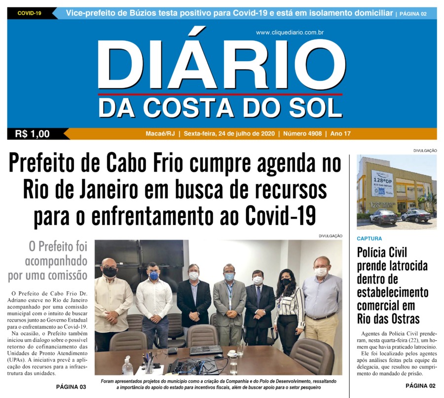Edições Impressas Edição de Sexta-feira 24/07/2020 nº 4908 Publicado em 24/07/2020 - 05:00 Escrito por Fernando Vitor Notícias relacionadas:destaque Seguinte Edição de Sáb a Seg 25 a 27/07/2020 nº 4909 Anterior Edição de quinta-feira 23/07/2020 nº 4907 Fernando Vitor Notícias Recentes Cabo Frio15 horas atrás Arte e solidariedade marcam a 1ª Mostra de Dança Regional de Tamoios Cidades20 horas atrás Região serrana de Macaé recebe 1º X-Force Passeio de Quadriciclo e Aranha neste domingo (26) Polícia21 horas atrás Polícia apreende mais de meio quilo de drogas no Loteamento São João, em Rio das Ostras Saúde2 dias atrás Eventos esportivo e cultural reforça campanha do Outubro Rosa em Rio das Ostras nesse domingo, 26 Edições Impressas2 dias atrás Sábado a segunda-feira 25 a 27/10/2025 nº 6197 Cidades2 dias atrás Shopping Plaza Macaé oferece programação gratuita com feira de adoção e show de pagode neste fim de semana Cidades3 dias atrás 32º BPM completa 23 anos com solenidade de celebração e reconhecimento aos policiais Armação dos Búzios3 dias atrás Búzios celebra esporte e superação com XC RUN 2025 Araruama3 dias atrás Araruama promove saúde, lazer e cidadania em evento comunitário Arraial do cabo3 dias atrás Educação e sustentabilidade se encontram para jovens de Arraial do Cabo Clique Diário E. L. Mídia Editora Ltda CNPJ: 09.298.880/0001-07 Redação: Rua Tupinambás 122 Gloria – Macaé/RJ comercial@diariocs.com (22) 2765-7353 (22) 999253130 Mais lidas da semana Cultura7 dias atrás Silva Jardim anuncia shows gratuitos de samba e pagode para o fim de semana Cultura6 dias atrás Música, emoção e cores: Rodrigo Pontes apresenta show especial em Rio das Ostras Cabo Frio6 dias atrás Atletas de várias cidades se enfrentam em competição de Muay Thai em Cabo Frio Cabo Frio6 dias atrás Serviços essenciais permanecem ativos durante ponto facultativo em Cabo Frio