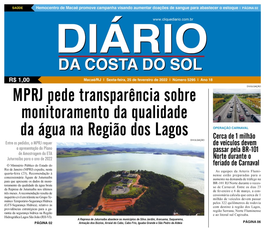 Edições Impressas Edição de sexta-feira 25/02/2022 nº 5295 Publicado em 24/02/2022 - 23:55 Escrito por Fernando Vitor Notícias relacionadas: Seguinte Edição de sábado a quinta-feira, 26/02 a 03/03/2022 nº 5296 Anterior Edição de quinta-feira 24/02/2022 nº 5294 Fernando Vitor Notícias Recentes Cultura1 hora atrás Moda e Prosa Caipira tem sua 6ª edição nessa quinta, 20, em Saquarema Comércio3 horas atrás Rio das Ostras tem 19ª edição de sua tradicional feira outlet nesse feriado Cidades3 horas atrás Macaé recebe 20ª edição do Prefeitura Presente no dia 25 de novembro Polícia4 horas atrás Denúncia anônima leva à prisão de duas mulheres por tráfico em Macaé Cidades4 horas atrás Caravana de Natal Coca-Cola passa por Rio das Ostras e Casimiro de Abreu nessa quinta, 20 Edições Impressas5 horas atrás Edição de quarta-feira 19/11/2025 nº 6215 Arraial do cabo21 horas atrás Educação de Arraial do Cabo orienta responsáveis sobre rematrícula para o próximo ano Cabo Frio21 horas atrás Evento comercial mais aguardado de Cabo Frio atinge 100% de estandes vendidos Saúde21 horas atrás Rio das Ostras comemora melhorias no atendimento da saúde municipal Cabo Frio22 horas atrás Nova exposição no Palácio das Águias recebe homenagem da cultura negra em Cabo Frio com 44 obras Clique Diário E. L. Mídia Editora Ltda CNPJ: 09.298.880/0001-07 Redação: Rua Tupinambás 122 Gloria – Macaé/RJ comercial@diariocs.com (22) 2765-7353 (22) 999253130 Mais lidas da semana Cultura5 dias atrás Adilson Lopes apresenta exposição “Trajetória” em Casimiro de Abreu Cidades2 dias atrás Macaé registra avanço na coleta seletiva porta a porta e recolhe mais de 2 toneladas em 45 dias Meio Ambiente2 dias atrás Lagoa de Iriry, em Rio das Ostras, recebe nova sinalização focada em sustentabilidade Mobilidade5 dias atrás Mobilidade promove fiscalização para verificar situação de táxis em Rio das Ostras