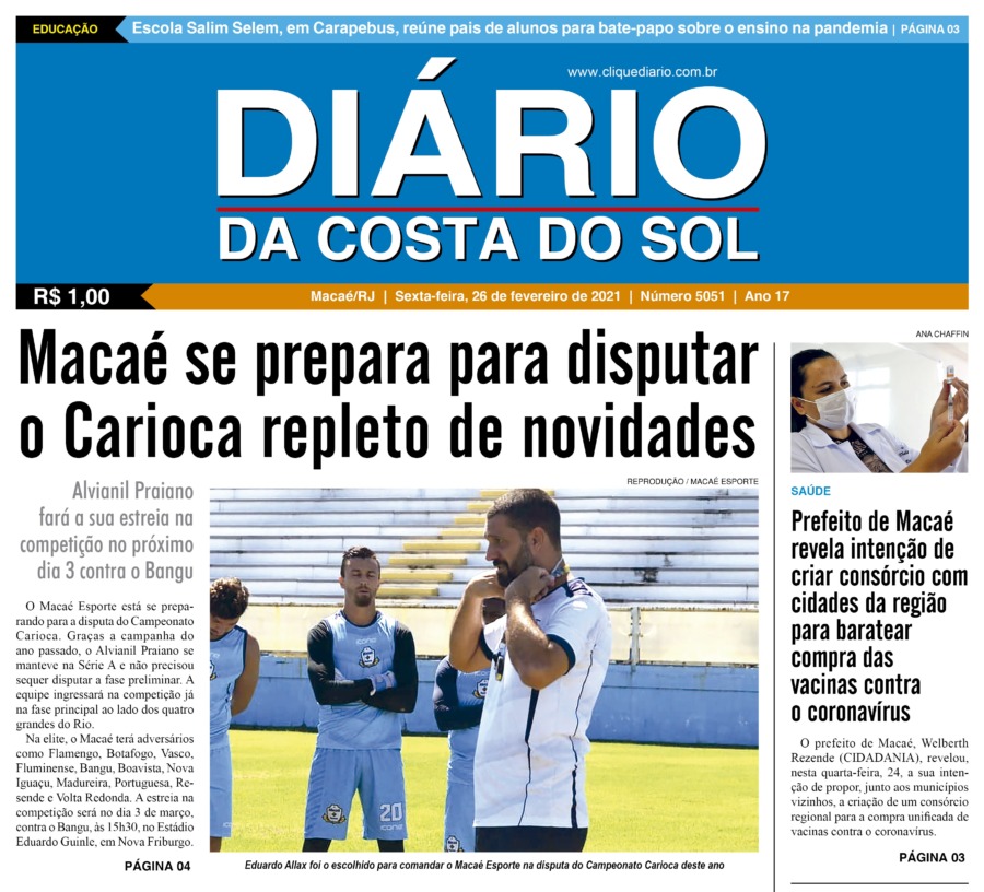 Edições Impressas Edição de sexta-feira 26/02/2021 nº 5051 Publicado em 26/02/2021 - 06:53 Escrito por Fernando Vitor Notícias relacionadas:destaque Seguinte Edição de Sábado a segunda-feira 27/02 a 01/03/2021 nº 5052 Anterior Edição de quinta-feira 25/02/2021 nº 5050 Fernando Vitor Notícias Recentes Cidades59 segundos atrás Parceria com o Estado reforça prevenção de enchentes em Rio das Ostras há 39 dias do verão Desenvolvimento32 minutos atrás Arteris vence novo leilão da BR-101 e mantém operação da via até 2047 Cidades39 minutos atrás Prefeitura de Quissamã abre prazo para solicitação de isenção do IPTU 2026 e 2027 Cabo Frio2 horas atrás Procon Cabo Frio atua com órgãos estaduais em vistoria rigorosa Cabo Frio3 horas atrás Iniciativa de Cabo Frio fortalece conexão entre candidatos e empregadores locais Polícia4 horas atrás Homem acusado de participar de assassinato de pai e filha é preso em Maricá Cidades4 horas atrás Hospital Ferreira Machado vai ganhar novo setor de imunização especializado em Campos Cidades5 horas atrás Mobilidade Urbana vai iniciar cadastramento de veículos para o espetáculo das Águas Dançantes em Macaé Cidades5 horas atrás Iluminação de Macaé ganha eficiência e sustentabilidade com novo projeto em parceria com a Enel Polícia5 horas atrás Farmácia é interditada e uma pessoa é presa em Rio das Ostras em operação da Polícia Federal Clique Diário E. L. Mídia Editora Ltda CNPJ: 09.298.880/0001-07 Redação: Rua Tupinambás 122 Gloria – Macaé/RJ comercial@diariocs.com (22) 2765-7353 (22) 999253130 Mais lidas da semana Arraial do cabo6 dias atrás Arraial do Cabo celebra 3ª edição do Festival de Frutos do Mar com entrada livre; Carol Biazin, Ramona Rox, Liah Soares e mais Meio Ambiente7 dias atrás Programa do governo estadual promove limpeza de rio no Âncora, em Rio das Ostras Meio Ambiente6 dias atrás Ações do Programa Limpa Rio seguem em vários pontos de Rio das Ostras Cabo Frio7 dias atrás Acordo entre Prefeitura de Cabo Frio e Estado dá novo ritmo ao trabalho da 126ª DP