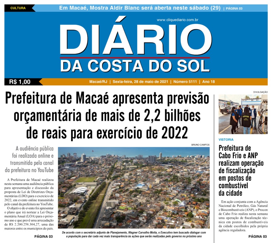 Edições Impressas Edição de sexta-feira 28/05/2021 nº 5111 Publicado em 28/05/2021 - 07:57 Escrito por Fernando Vitor Notícias relacionadas:destaque Seguinte Edição de sábado a segunda-feira 29 a 31/05/2021 n° 5112 Anterior Edição de quinta-feira 27/05/2021 nº 5110 Fernando Vitor Notícias Recentes Cabo Frio3 horas atrás Agentes de Cabo Frio recebem novo treinamento técnico para atuar em casos de poluição sonora Cabo Frio3 horas atrás Homem procurado por latrocínio é detido por agentes em Cabo Frio Cabo Frio3 horas atrás Representante da Guarda Civil de Cabo Frio compete na etapa final ao lado de jovens atletas Polícia3 horas atrás Prefeito de Rio das Ostras volta de Brasília com esperança de novos investimentos Cidades4 horas atrás Campos publica 8ª convocação e chama 374 professores substitutos para a rede municipal Esporte4 horas atrás De Saquarema para o Brasileirão: Vasco troca gramado de São Januário Cidades4 horas atrás Quissamã inicia planejamento educacional para 2026 com foco em Educação Financeira Polícia7 horas atrás Mulher é presa na RJ-106, em Saquarema, com R$ 38 mil em drogas e arma Saúde7 horas atrás Silva Jardim tem aulão em alusão à campanha mundial do Novembro Azul Mobilidade8 horas atrás Mobilidade promove fiscalização para verificar situação de táxis em Rio das Ostras Clique Diário E. L. Mídia Editora Ltda CNPJ: 09.298.880/0001-07 Redação: Rua Tupinambás 122 Gloria – Macaé/RJ comercial@diariocs.com (22) 2765-7353 (22) 999253130 Mais lidas da semana Cultura9 horas atrás Adilson Lopes apresenta exposição “Trajetória” em Casimiro de Abreu Cidades3 dias atrás Servidores de Rio das Ostras participam de treinamento do Estado em Búzios Polícia2 dias atrás Farmácia é interditada e uma pessoa é presa em Rio das Ostras em operação da Polícia Federal Cidades2 dias atrás Vereadores de Macaé vão embarcar nesta quinta para participar da COP 30 em Belém