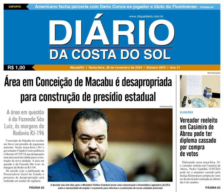 Edições Impressas Edição de sexta-feira 29/11/2024 nº 5975 Publicado em 29/11/2024 - 08:23 Escrito por Redação Notícias relacionadas: Seguinte Edição de sábado a segunda-feira 30/11 a 02/12/2024 nº 5976 Anterior Edição de quinta-feira 28/11/2024 nº 5974 Redação Notícias Recentes Cidades10 horas atrás 32º BPM completa 23 anos com solenidade de celebração e reconhecimento aos policiais Armação dos Búzios10 horas atrás Búzios celebra esporte e superação com XC RUN 2025 Araruama10 horas atrás Araruama promove saúde, lazer e cidadania em evento comunitário Arraial do cabo10 horas atrás Educação e sustentabilidade se encontram para jovens de Arraial do Cabo Cidades10 horas atrás Quissamã avança na reformulação do Currículo Municipal de Educação Arraial do cabo10 horas atrás PIPE estimula presença e desempenho de alunos da rede pública de Arraial em programa estudantil Cabo Frio10 horas atrás Prefeitura de Cabo Frio prepara espaço para visitação no Dia de Finados Polícia10 horas atrás Dois homens são presos após furto a residência em Campos Cabo Frio10 horas atrás Câmara de Cabo Frio recebe debate sobre finanças municipais Cabo Frio10 horas atrás Projeto Mar Sem Lixo promove mostra ambiental com apoio da Secretaria de Meio Ambiente em Cabo Frio Clique Diário E. L. Mídia Editora Ltda CNPJ: 09.298.880/0001-07 Redação: Rua Tupinambás 122 Gloria – Macaé/RJ comercial@diariocs.com (22) 2765-7353 (22) 999253130 Mais lidas da semana Cultura4 dias atrás Silva Jardim anuncia shows gratuitos de samba e pagode para o fim de semana Cabo Frio4 dias atrás Serviços essenciais permanecem ativos durante ponto facultativo em Cabo Frio Cabo Frio4 dias atrás Atletas de várias cidades se enfrentam em competição de Muay Thai em Cabo Frio Polícia4 dias atrás Policiais da PRF salvam bebê engasgado na BR-101, em Campos