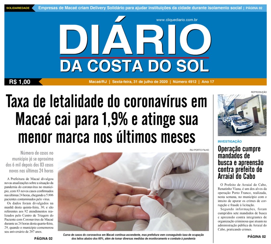 Edições Impressas Edição de sexta-feira 31/07/2020 nº 4912 Publicado em 31/07/2020 - 05:00 Escrito por Fernando Vitor Notícias relacionadas:destaque Seguinte Edição de Sábado a segunda-feira 1º a 03/08/2020 nº 4913 Anterior Edição de quarta e quinta-feira 29 e 30/07/2020 nº 4911 Fernando Vitor Notícias Recentes Cabo Frio15 horas atrás Arte e solidariedade marcam a 1ª Mostra de Dança Regional de Tamoios Cidades20 horas atrás Região serrana de Macaé recebe 1º X-Force Passeio de Quadriciclo e Aranha neste domingo (26) Polícia20 horas atrás Polícia apreende mais de meio quilo de drogas no Loteamento São João, em Rio das Ostras Saúde2 dias atrás Eventos esportivo e cultural reforça campanha do Outubro Rosa em Rio das Ostras nesse domingo, 26 Edições Impressas2 dias atrás Sábado a segunda-feira 25 a 27/10/2025 nº 6197 Cidades2 dias atrás Shopping Plaza Macaé oferece programação gratuita com feira de adoção e show de pagode neste fim de semana Cidades3 dias atrás 32º BPM completa 23 anos com solenidade de celebração e reconhecimento aos policiais Armação dos Búzios3 dias atrás Búzios celebra esporte e superação com XC RUN 2025 Araruama3 dias atrás Araruama promove saúde, lazer e cidadania em evento comunitário Arraial do cabo3 dias atrás Educação e sustentabilidade se encontram para jovens de Arraial do Cabo Clique Diário E. L. Mídia Editora Ltda CNPJ: 09.298.880/0001-07 Redação: Rua Tupinambás 122 Gloria – Macaé/RJ comercial@diariocs.com (22) 2765-7353 (22) 999253130 Mais lidas da semana Cultura7 dias atrás Silva Jardim anuncia shows gratuitos de samba e pagode para o fim de semana Cultura6 dias atrás Música, emoção e cores: Rodrigo Pontes apresenta show especial em Rio das Ostras Cabo Frio6 dias atrás Atletas de várias cidades se enfrentam em competição de Muay Thai em Cabo Frio Cabo Frio6 dias atrás Serviços essenciais permanecem ativos durante ponto facultativo em Cabo Frio