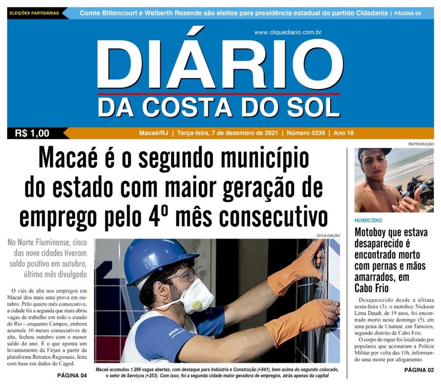 Redação: Rua Tupinambás 122 Gloria – Macaé/RJ