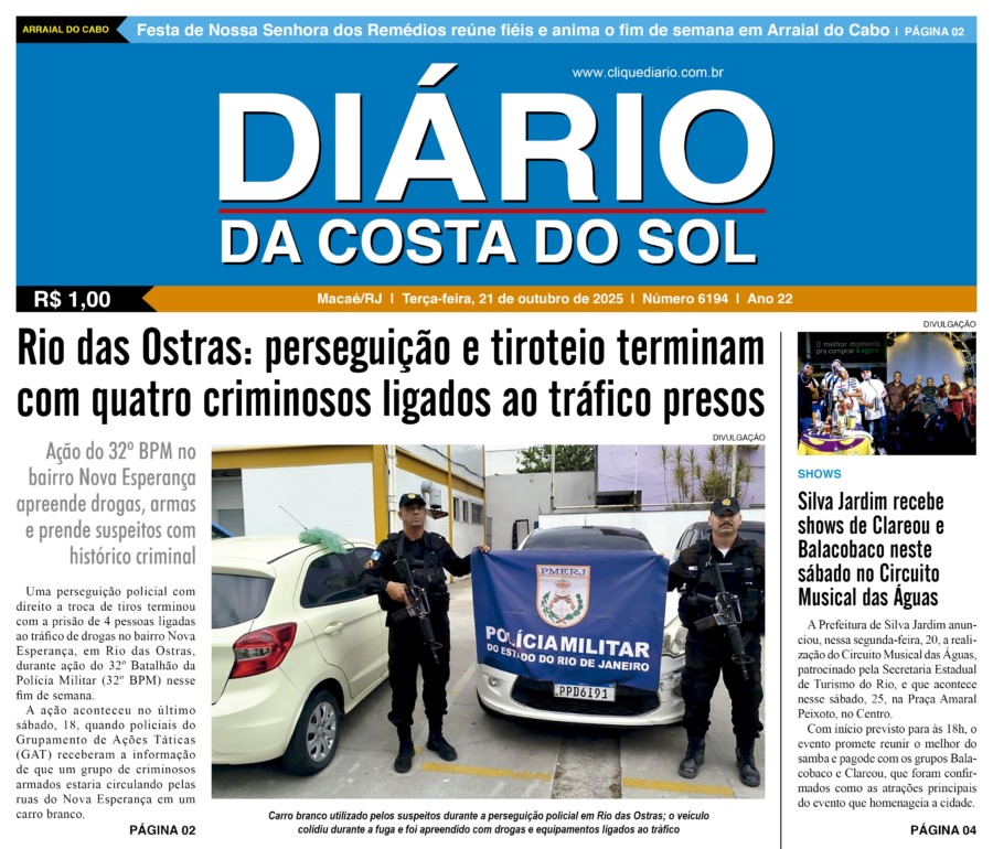 Redação em 21/10/2025 - 09:07, 09:07 Edição de Terça-feira 21/10/2025 nº 6194 Edições Impressas Receber notificações Cancelar notificações Receber notificações Cancelar notificações Relacionados Edição de sábado a segunda-feira 18 a 20/10/2025 nº 6193 Edição de sexta-feira 17/10/2025 nº 6192 Leave a Comment