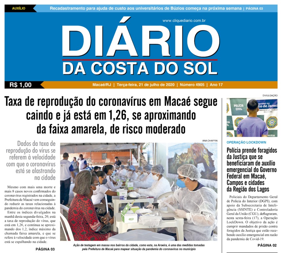 Edições Impressas Edição de terça-feira 21_07_2020 nº 4905 Publicado em 21/07/2020 - 05:00 Escrito por Fernando Vitor Notícias relacionadas:destaque Seguinte Edição de quarta-feira 22/07/2020 nº 4906 Anterior Edição de Sáb a Seg 18 a 20/07/2020 nº 4904 Fernando Vitor Notícias Recentes Cabo Frio15 horas atrás Arte e solidariedade marcam a 1ª Mostra de Dança Regional de Tamoios Cidades21 horas atrás Região serrana de Macaé recebe 1º X-Force Passeio de Quadriciclo e Aranha neste domingo (26) Polícia21 horas atrás Polícia apreende mais de meio quilo de drogas no Loteamento São João, em Rio das Ostras Saúde2 dias atrás Eventos esportivo e cultural reforça campanha do Outubro Rosa em Rio das Ostras nesse domingo, 26 Edições Impressas2 dias atrás Sábado a segunda-feira 25 a 27/10/2025 nº 6197 Cidades2 dias atrás Shopping Plaza Macaé oferece programação gratuita com feira de adoção e show de pagode neste fim de semana Cidades3 dias atrás 32º BPM completa 23 anos com solenidade de celebração e reconhecimento aos policiais Armação dos Búzios3 dias atrás Búzios celebra esporte e superação com XC RUN 2025 Araruama3 dias atrás Araruama promove saúde, lazer e cidadania em evento comunitário Arraial do cabo3 dias atrás Educação e sustentabilidade se encontram para jovens de Arraial do Cabo Clique Diário E. L. Mídia Editora Ltda CNPJ: 09.298.880/0001-07 Redação: Rua Tupinambás 122 Gloria – Macaé/RJ comercial@diariocs.com (22) 2765-7353 (22) 999253130 Mais lidas da semana Cultura7 dias atrás Silva Jardim anuncia shows gratuitos de samba e pagode para o fim de semana Cultura6 dias atrás Música, emoção e cores: Rodrigo Pontes apresenta show especial em Rio das Ostras Cabo Frio6 dias atrás Atletas de várias cidades se enfrentam em competição de Muay Thai em Cabo Frio Cabo Frio6 dias atrás Serviços essenciais permanecem ativos durante ponto facultativo em Cabo Frio