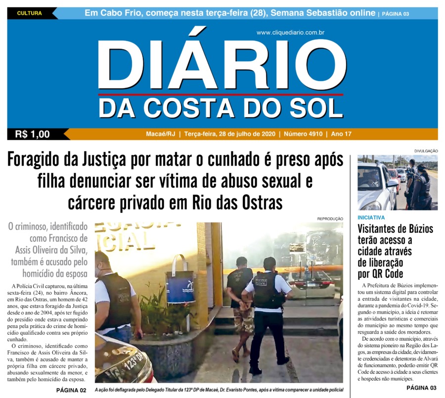 Edições Impressas Edição de terça-feira 28/07/2020 nº 4910 Publicado em 28/07/2020 - 05:00 Escrito por Fernando Vitor Notícias relacionadas:destaque Seguinte Edição de quarta e quinta-feira 29 e 30/07/2020 nº 4911 Anterior Edição de Sáb a Seg 25 a 27/07/2020 nº 4909 Fernando Vitor Notícias Recentes Cabo Frio15 horas atrás Arte e solidariedade marcam a 1ª Mostra de Dança Regional de Tamoios Cidades20 horas atrás Região serrana de Macaé recebe 1º X-Force Passeio de Quadriciclo e Aranha neste domingo (26) Polícia20 horas atrás Polícia apreende mais de meio quilo de drogas no Loteamento São João, em Rio das Ostras Saúde2 dias atrás Eventos esportivo e cultural reforça campanha do Outubro Rosa em Rio das Ostras nesse domingo, 26 Edições Impressas2 dias atrás Sábado a segunda-feira 25 a 27/10/2025 nº 6197 Cidades2 dias atrás Shopping Plaza Macaé oferece programação gratuita com feira de adoção e show de pagode neste fim de semana Cidades3 dias atrás 32º BPM completa 23 anos com solenidade de celebração e reconhecimento aos policiais Armação dos Búzios3 dias atrás Búzios celebra esporte e superação com XC RUN 2025 Araruama3 dias atrás Araruama promove saúde, lazer e cidadania em evento comunitário Arraial do cabo3 dias atrás Educação e sustentabilidade se encontram para jovens de Arraial do Cabo Clique Diário E. L. Mídia Editora Ltda CNPJ: 09.298.880/0001-07 Redação: Rua Tupinambás 122 Gloria – Macaé/RJ comercial@diariocs.com (22) 2765-7353 (22) 999253130 Mais lidas da semana Cultura7 dias atrás Silva Jardim anuncia shows gratuitos de samba e pagode para o fim de semana Cultura6 dias atrás Música, emoção e cores: Rodrigo Pontes apresenta show especial em Rio das Ostras Cabo Frio6 dias atrás Atletas de várias cidades se enfrentam em competição de Muay Thai em Cabo Frio Cabo Frio6 dias atrás Serviços essenciais permanecem ativos durante ponto facultativo em Cabo Frio