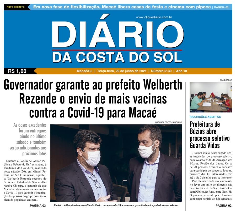 Edições Impressas Edição de terça-feira 29/06/2021 n° 5130 Publicado em 29/06/2021 - 00:01 Escrito por Fernando Vitor Notícias relacionadas:destaque Seguinte Edição de quarta-feira 30/06/2021 nº 5131 Anterior Edição de sábado a segunda-feira 26 a 28/06/2021 nº 5129 Fernando Vitor Notícias Recentes Cabo Frio6 horas atrás Cabo Frio antecipa a Black Friday com grandes marcas e atrações musicais Cidades9 horas atrás Procon de Rio das Ostras investiga denúncias de cobrança dupla na Enel Cidades12 horas atrás Macaé sediará o 8º Encontro Fluminense de Arborização Urbana em dezembro Cultura1 dia atrás Teatro de Rio das Ostras recebe 2 espetáculos de dança nesse fim de semana Arraial do cabo1 dia atrás FIPAC oferece serviços de saúde e prevenção ao câncer de próstata em Arraial do Cabo Arraial do cabo1 dia atrás Resultado preliminar do concurso de Arraial já está no ar pelo IBAM Edições Impressas1 dia atrás Edição de sábado a segunda-feira 15 a 17/11/2025 nº 6213 Cidades1 dia atrás Shopping Plaza Macaé inicia programação de Natal neste fim de semana Cabo Frio2 dias atrás Disputa em dobro marca encerramento em Cabo Frio do circuito de surf Cabo Frio2 dias atrás Agentes de Cabo Frio recebem novo treinamento técnico para atuar em casos de poluição sonora Clique Diário E. L. Mídia Editora Ltda CNPJ: 09.298.880/0001-07 Redação: Rua Tupinambás 122 Gloria – Macaé/RJ comercial@diariocs.com (22) 2765-7353 (22) 999253130 Mais lidas da semana Cultura2 dias atrás Adilson Lopes apresenta exposição “Trajetória” em Casimiro de Abreu Cidades5 dias atrás Servidores de Rio das Ostras participam de treinamento do Estado em Búzios Polícia4 dias atrás Farmácia é interditada e uma pessoa é presa em Rio das Ostras em operação da Polícia Federal Esporte2 dias atrás De Saquarema para o Brasileirão: Vasco troca gramado de São Januário