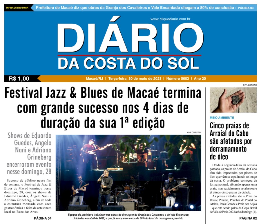 Edições Impressas Edição de terça-feira 30/05/2023 nº 5603 Publicado em 29/05/2023 - 23:55 Escrito por Redação Notícias relacionadas: Seguinte Edição de quarta-feira 31/05/2023 nº 5604 Anterior Edição de sábado a segunda-feira 27 a 29/05/2023 nº 5602 Redação Notícias Recentes Saúde8 horas atrás Eventos esportivo e cultural reforça campanha do Outubro Rosa em Rio das Ostras nesse domingo, 26 Edições Impressas11 horas atrás Sábado a segunda-feira 25 a 27/10/2025 nº 6197 Cidades12 horas atrás Shopping Plaza Macaé oferece programação gratuita com feira de adoção e show de pagode neste fim de semana Cidades1 dia atrás 32º BPM completa 23 anos com solenidade de celebração e reconhecimento aos policiais Armação dos Búzios1 dia atrás Búzios celebra esporte e superação com XC RUN 2025 Araruama1 dia atrás Araruama promove saúde, lazer e cidadania em evento comunitário Arraial do cabo1 dia atrás Educação e sustentabilidade se encontram para jovens de Arraial do Cabo Cidades1 dia atrás Quissamã avança na reformulação do Currículo Municipal de Educação Arraial do cabo1 dia atrás PIPE estimula presença e desempenho de alunos da rede pública de Arraial em programa estudantil Cabo Frio1 dia atrás Prefeitura de Cabo Frio prepara espaço para visitação no Dia de Finados Clique Diário E. L. Mídia Editora Ltda CNPJ: 09.298.880/0001-07 Redação: Rua Tupinambás 122 Gloria – Macaé/RJ comercial@diariocs.com (22) 2765-7353 (22) 999253130 Mais lidas da semana Cultura5 dias atrás Silva Jardim anuncia shows gratuitos de samba e pagode para o fim de semana Cabo Frio5 dias atrás Serviços essenciais permanecem ativos durante ponto facultativo em Cabo Frio Polícia5 dias atrás Policiais da PRF salvam bebê engasgado na BR-101, em Campos Arraial do cabo5 dias atrás Prisão em flagrante marca operação da Patrulha Maria da Penha em Arraial do Cabo