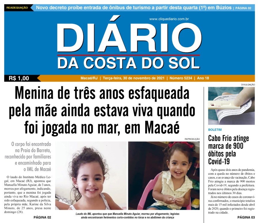 Edições Impressas Edição de terça-feira 30/11/2021 nº 5234 Publicado em 30/11/2021 - 00:01 Escrito por Fernando Vitor Notícias relacionadas: Seguinte Edição de quarta-feira 01/12/2021 nº 5235 Anterior Edição de sábado a segunda-feira 27 a 29/11/2021 nº 5233 Fernando Vitor Notícias Recentes Cabo Frio21 minutos atrás Cabo Frio prepara esquema especial de segurança nas praias e áreas de lazer Cabo Frio25 minutos atrás Cabo Frio realiza ações de proteção a fauna após aparecimento de animais em bairros Cabo Frio38 minutos atrás Cabo Frio reúne especialistas em evento do programa “Vim Cuidar de Você” Desenvolvimento38 minutos atrás Rio das Ostras estreita relações com a Rede Petro BC de olho em eventos do setor de energia em 2026 Cabo Frio41 minutos atrás Aula-passeio apresenta riqueza cultural e ambiental de Cabo Frio na Fazenda Campos Novos Cabo Frio45 minutos atrás Cabo Frio suspende expediente em órgãos públicos nesta sexta Cidades47 minutos atrás Macaé terá Dia do Futebol Feminino e programa para valorização da mulher rural Arraial do cabo48 minutos atrás Carreta científica desembarca em Arraial do Cabo com programação gratuita Polícia1 hora atrás Polícia Civil prende liderança do ADA no bairro Fronteira em Macaé Cidades1 hora atrás Homem é detido em Campos após ser encontrado com arma municiada durante patrulha Clique Diário E. L. Mídia Editora Ltda CNPJ: 09.298.880/0001-07 Redação: Rua Tupinambás 122 Gloria – Macaé/RJ comercial@diariocs.com (22) 2765-7353 (22) 999253130 Mais lidas da semana Cultura5 dias atrás Adilson Lopes apresenta exposição “Trajetória” em Casimiro de Abreu Mobilidade5 dias atrás Mobilidade promove fiscalização para verificar situação de táxis em Rio das Ostras Cidades6 dias atrás Macaé é finalista no Festival Internacional de Cinema Cristão com “A Paixão de Cristo” Meio Ambiente2 dias atrás Lagoa de Iriry, em Rio das Ostras, recebe nova sinalização focada em sustentabilidade