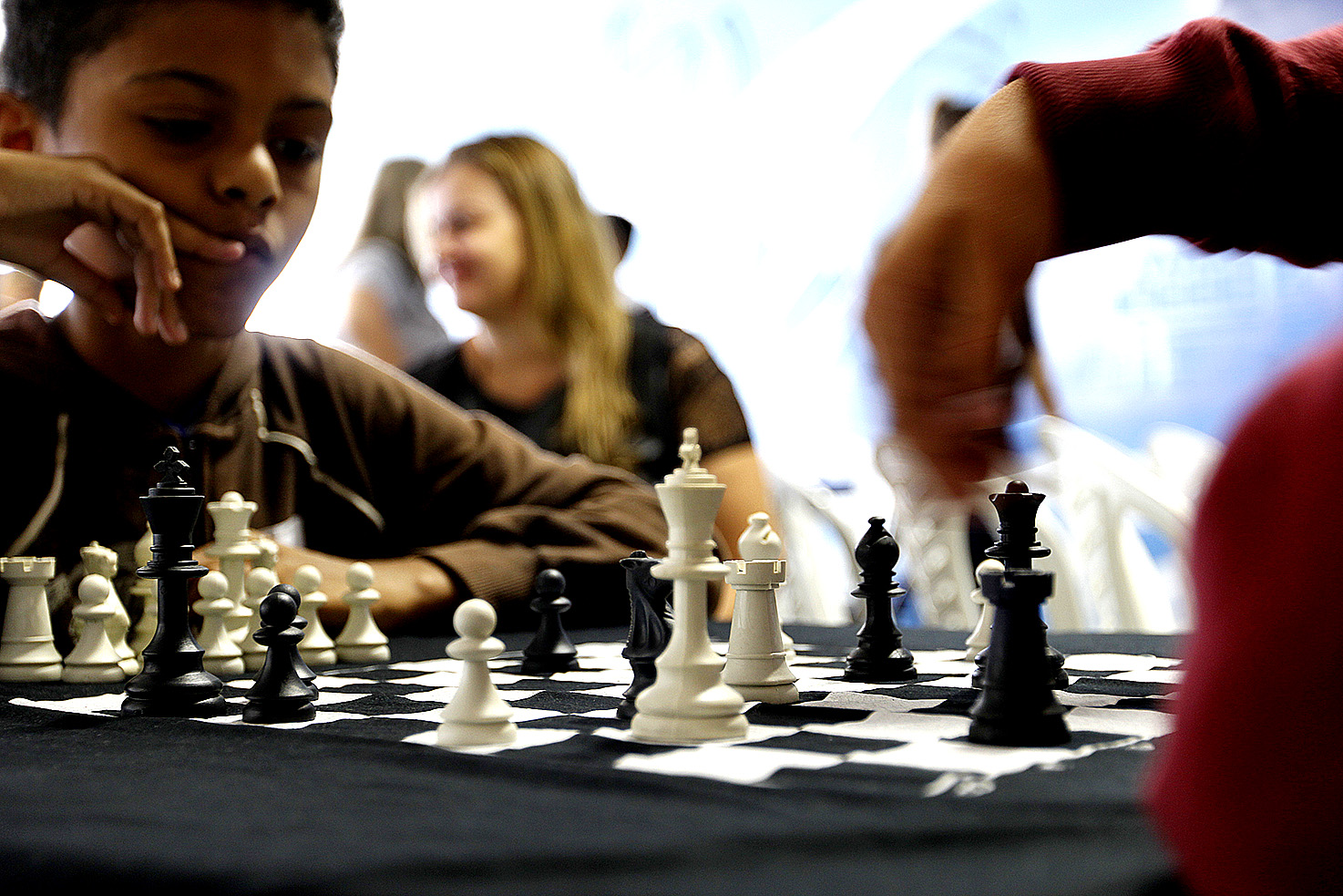 Alunos do Ensino Fundamental do 1° e 2° segmento e do Ensino Médio das escolas da rede municipal, do Colégio de Aplicação (CAp) e das escolas particulares Exame, Castelo, Ativo, Atlântico e Aprovado devem preencher a ficha de inscrição, até o dia 17, e enviar para o e-mail educacaoesportivasemed@gmail.com, para participar do Jeem Xadrez 2017. O evento será realizado dia 31, no hall da Cidade Universitária, a partir das 9h. Na edição do Jeem Xadrez do ano de 2016 cerca de 120 alunos participaram.
