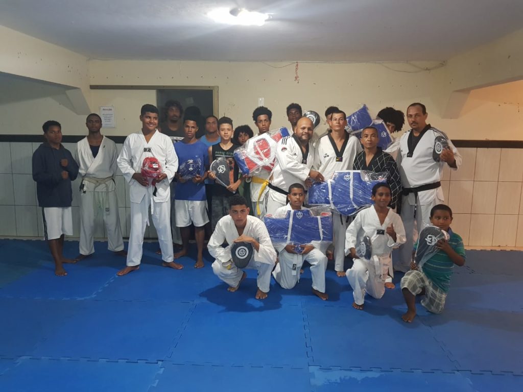 Foram doadas 30 raquetes para chute, 20 protetores de tórax, 6 pares de protetor de cabeça, 6 aparadores de chute e 6 pares de luva de foco.