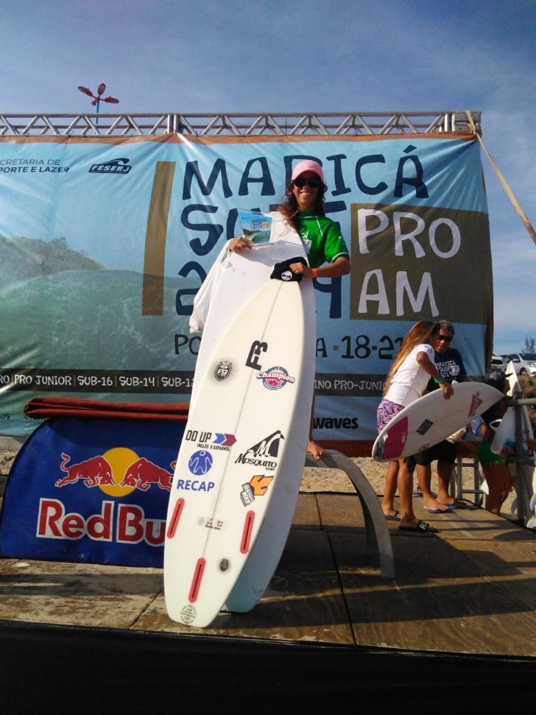 A macaense Brhuninha Neves foi até a Praia de Ponta Negra, em Maricá (RJ), no último final de semana para disputar o Marica Surf Pro/AM 2019. O evento contou com disputas de altíssimo nível, reunindo grandes atletas de vários estados do Brasil. Brhuna competiu em duas categorias: a profissional feminino e a Pro/Jr feminino sub-18.