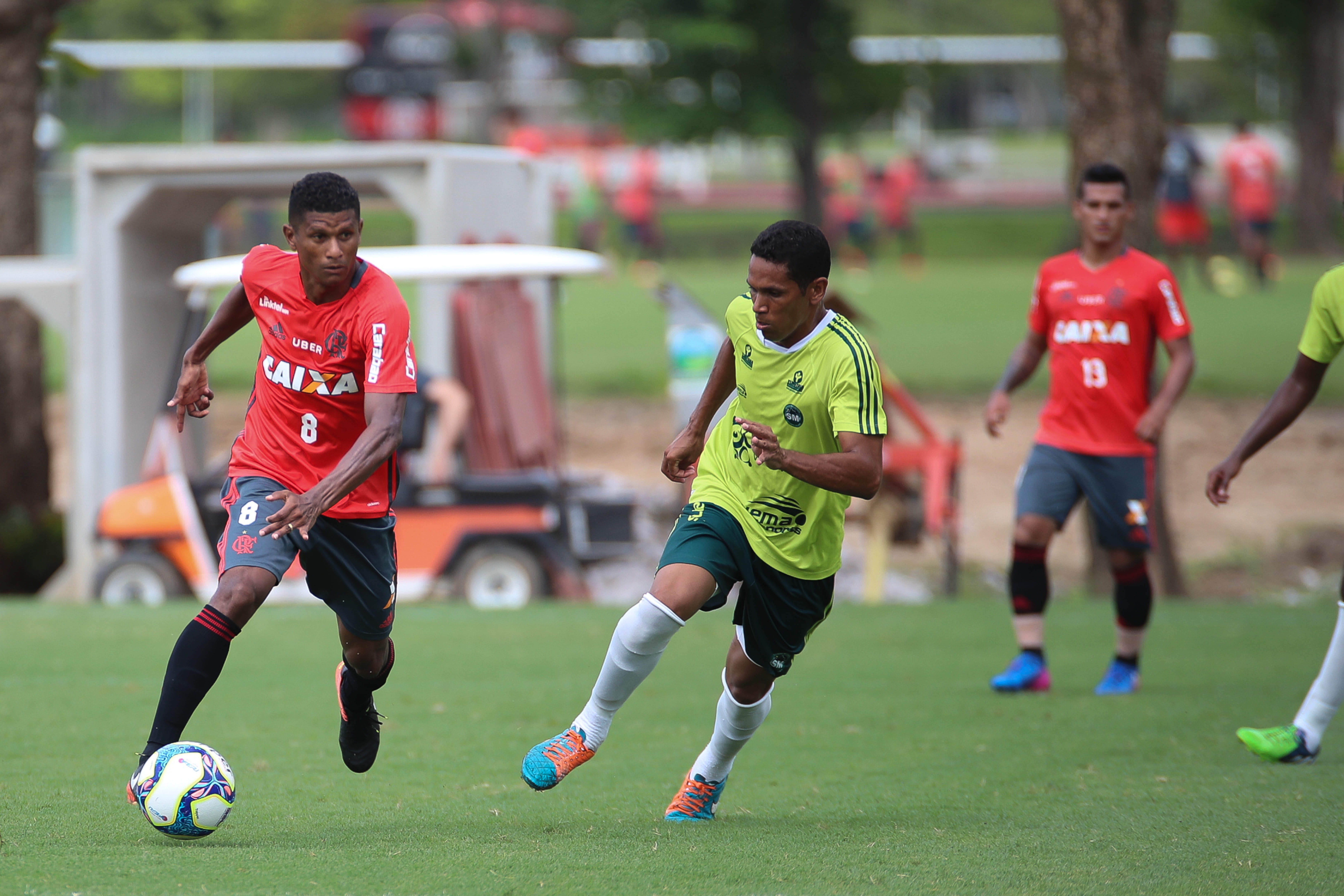 Sem poder contar com Muralha, Jorge, William Arão e Diego que estão com a Seleção Brasileira, o Flamengo foi a campo com: Thiago, Pará, Réver, Rafael Vaz, Trauco, Márcio Araújo, Rômulo, Mancuello, Adryan, Éverton e Guerreiro. Com essa formação, o Rubro-Negro dominou as ações e ditou o ritmo do jogo na primeira etapa. O volante Márcio Araújo abriu o placar para o Fla aos 20 minutos, ao tocar por cobertura na saída do goleiro.