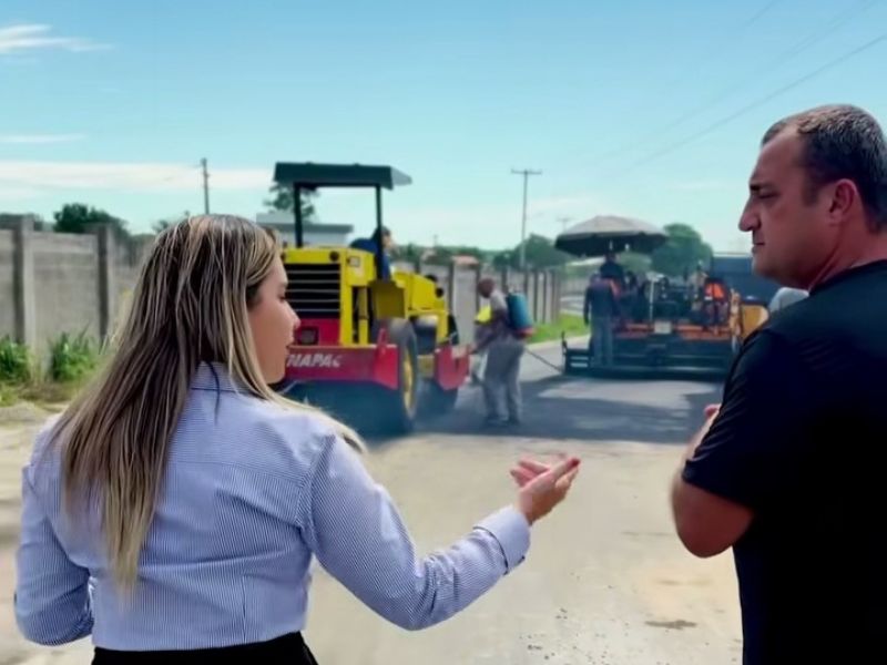 A prefeita de Araruama, Daniela Soares (PL), esteve, nessa quarta-feira, 9, na Avenida da Pedreira, no bairro Ponte dos Leites, para supervisionar o início das obras de asfaltamento da via, realizadas pela prefeitura.