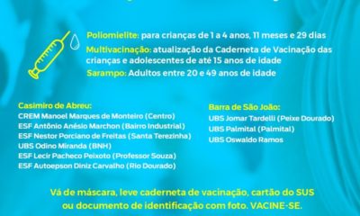 Em Casimiro de Abreu, Dia D de vacinação no próximo sábado (17), será em seis postos de vacinação