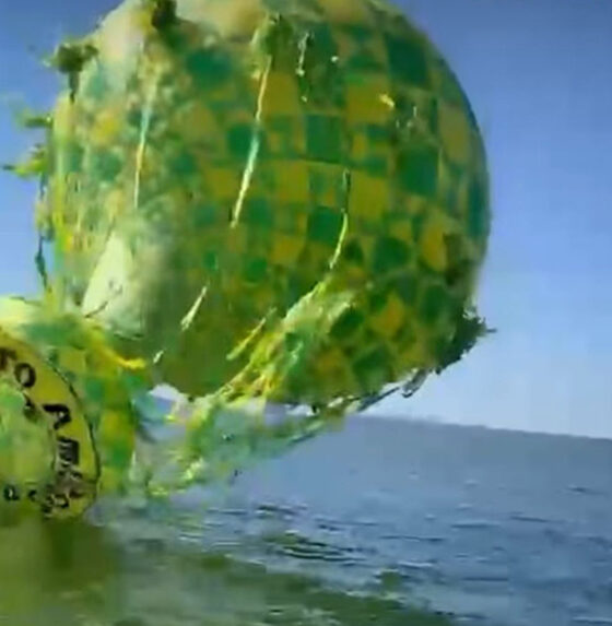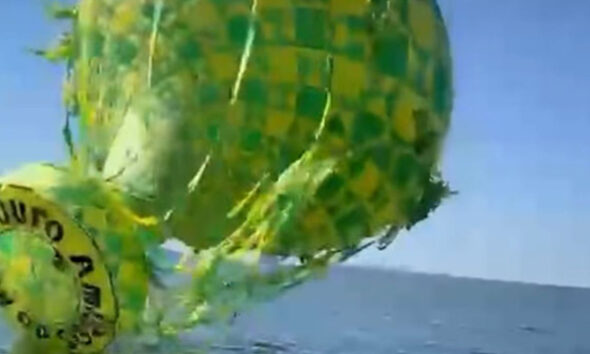 Um balão caiu na Lagoa de Araruama, na altura de Iguaba Grande, neste domingo (26), e foi retirado da água...