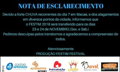 Evento seria realizado neste final de semana, mas devido às fortes chuvas que atingem a cidade foi transferido para nova data. Festival será na Rinha das...