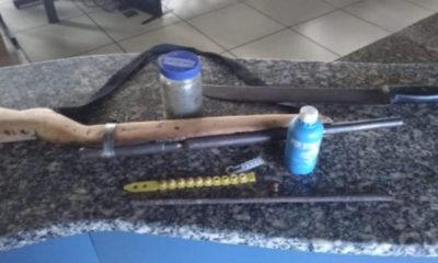 Além da arma de fabricação caseira, os militares apreenderam pólvora, chumbos e materiais para fabricação de cartuchos com o acusado. Um foragido da Justiça foi preso...