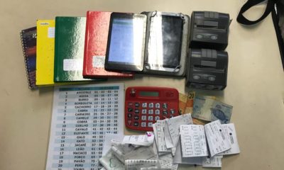 Foram apreendidos quatro cadernos de anotações de jogos de bicho, dois tablets, duas impressoras, R$42,00 em espécie e comprovantes de apostas. A Polícia Militar (PM) fechou...