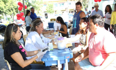 Prefeita de Quissamã, Fátima Pacheco (PODE), posa para foto entre seu vice, Marcelo Batista (PRB) e deputado estadual Rosenverg Reis (PMDB), que estiveram acompanhando as obras...