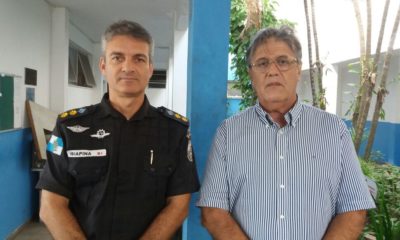Comandante do 32º BPM, coronel Rodrigo Ibiapina ao lado do presidente da CDL Macaé, Luis Henrique Fragoso (Ferreti). Representantes da Câmara de Dirigentes Lojistas de Macaé...