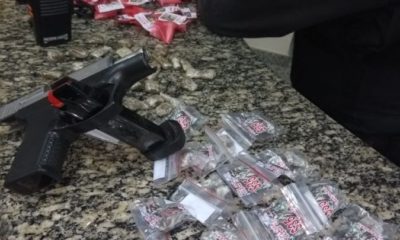 Na ação foram apreendidos uma calibre 380, munições, 62 papelotes de cocaína 52 papelotes de maconha, um rádio, um celular e R$ 57. Cinco suspeitos de...