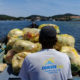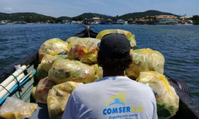 A coleta foi realizada com ajuda de um barco para facilitar o acesso dos 30 agentes que atuaram na limpeza. Mais de cem sacos de lixo...