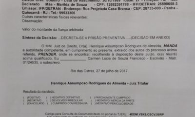 O mandado de prisão foi expedido pela 2ª Vara de Rio das Ostras no dia 27 de setembro deste ano Bertha Muniz Um foragido da Justiça...