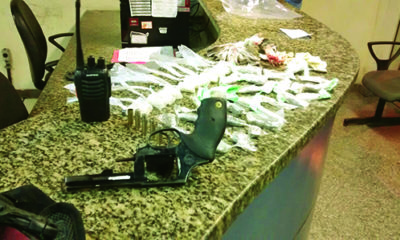 Com o suspeito, foram arrecadados um revólver calibre 38, 44 cápsulas de cocaína, 45 buchas de maconha e um radiotransmissor Bertha Muniz Homens do...