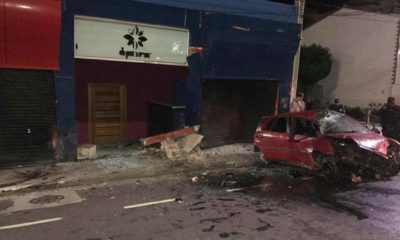 Três pessoas estavam no veículo que ficou destruído. Apesar do susto, ninguém se feriu gravemente Bertha Muniz Um carro invadiu uma boate localizada no Cavaleiros, em...