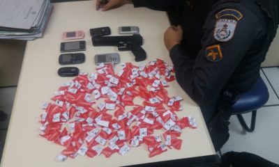 Além da droga, sete aparelhos celulares e um pistola de airsoft foram arrecadados na ação da PM Bertha Muniz Dois homens foram presos por tráfico na...
